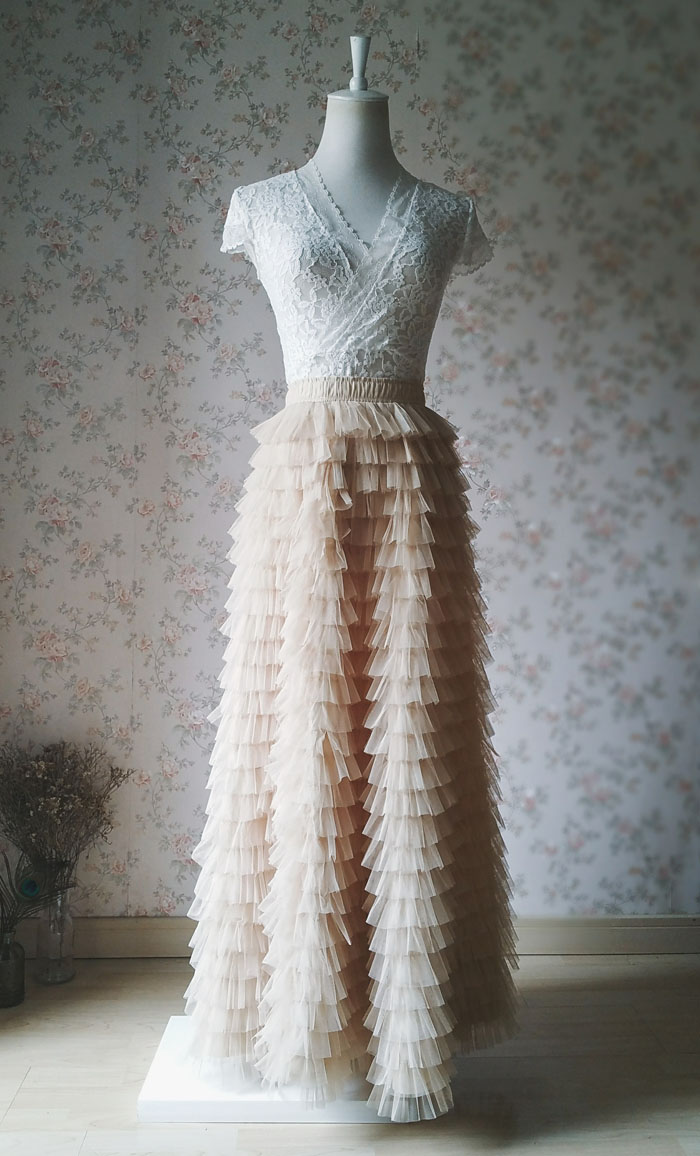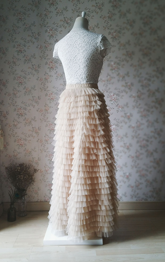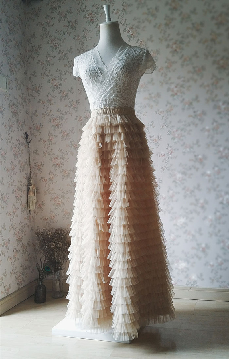 CHAMPAGNE Tiered Tulle Skirt High Waisted Party Prom Tulle Skirt Wedding Bridal Tulle Outfits Champagne Tiered Skirt Layered Princess Skirt