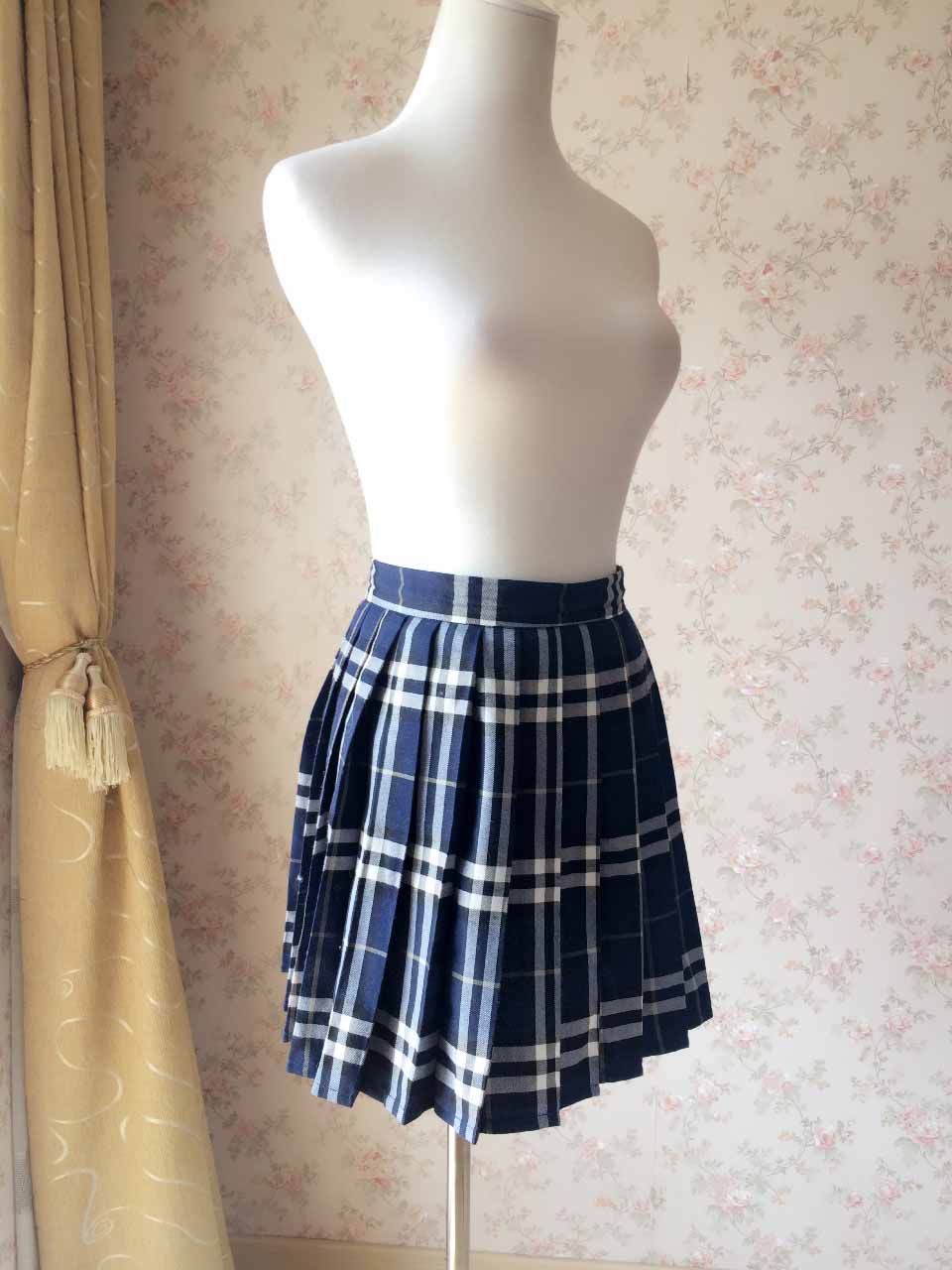Navy Blue Plaid Pleated Skirt Women Girl Pleated Plaid Skirt Outfit Plus Size Navy Plaid Skirts