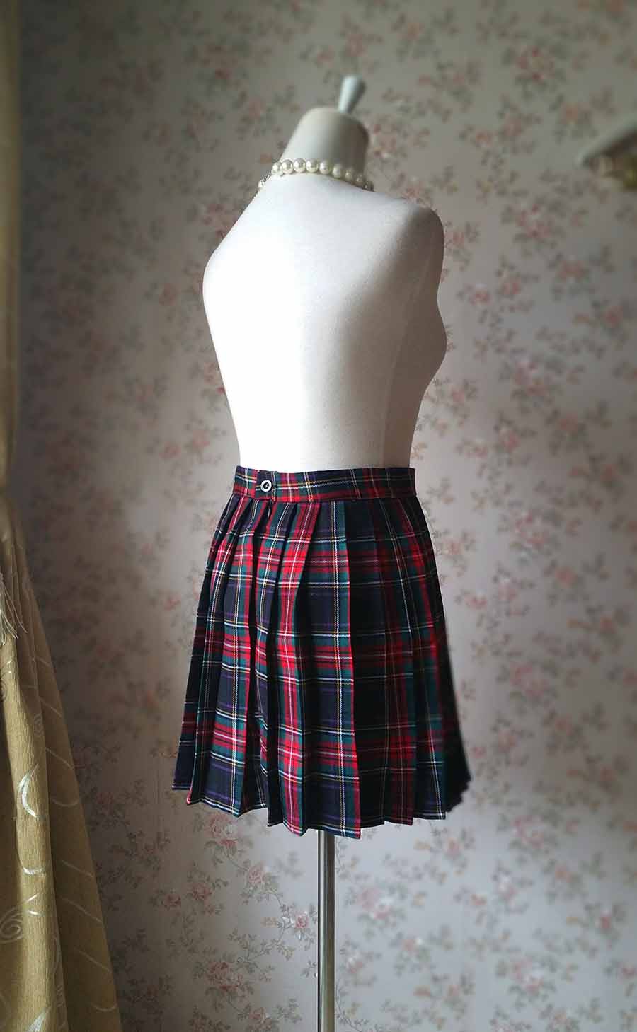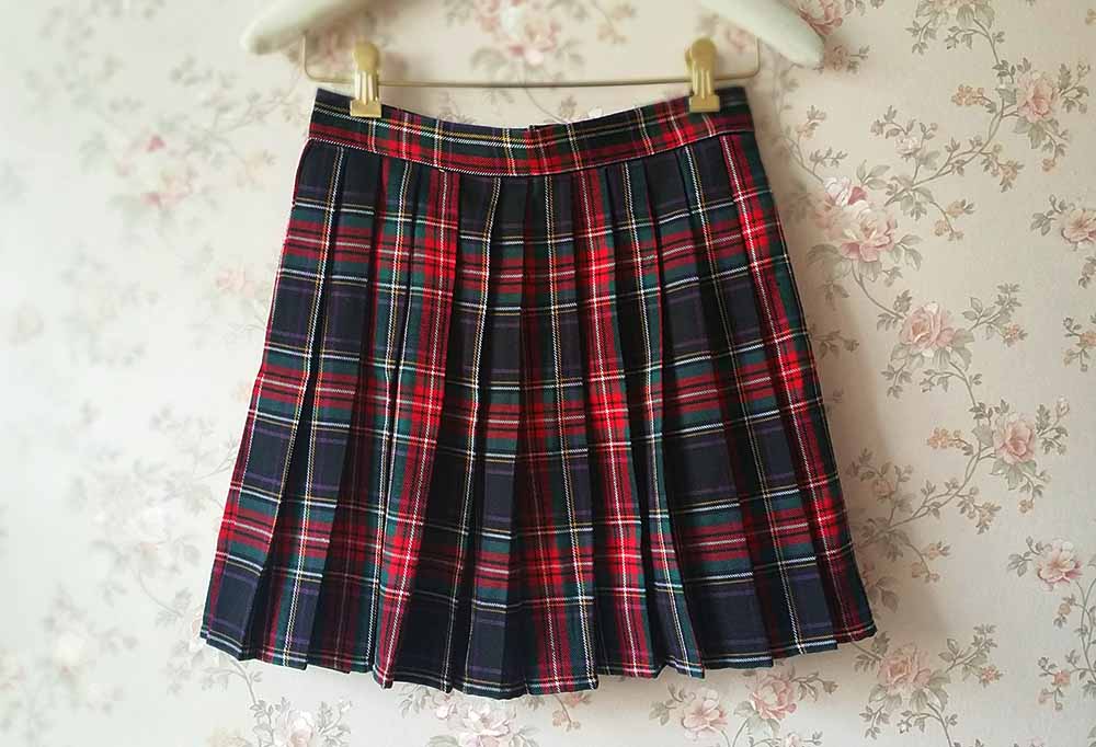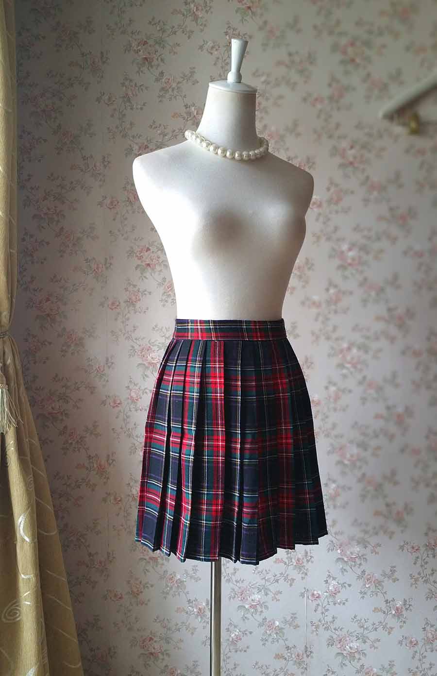Red Green Plaid Women Girl Pleated Plaid Skirt School Style Pleated Plaid Skirts- US2-US8