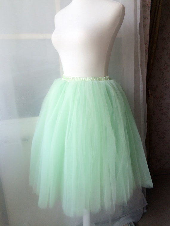 Mint Green Women 6 layer tutu Midi Tulle Skirt Black A-line Tutu Skirt Party Skirt Circle Tulle Skirt Plus Size