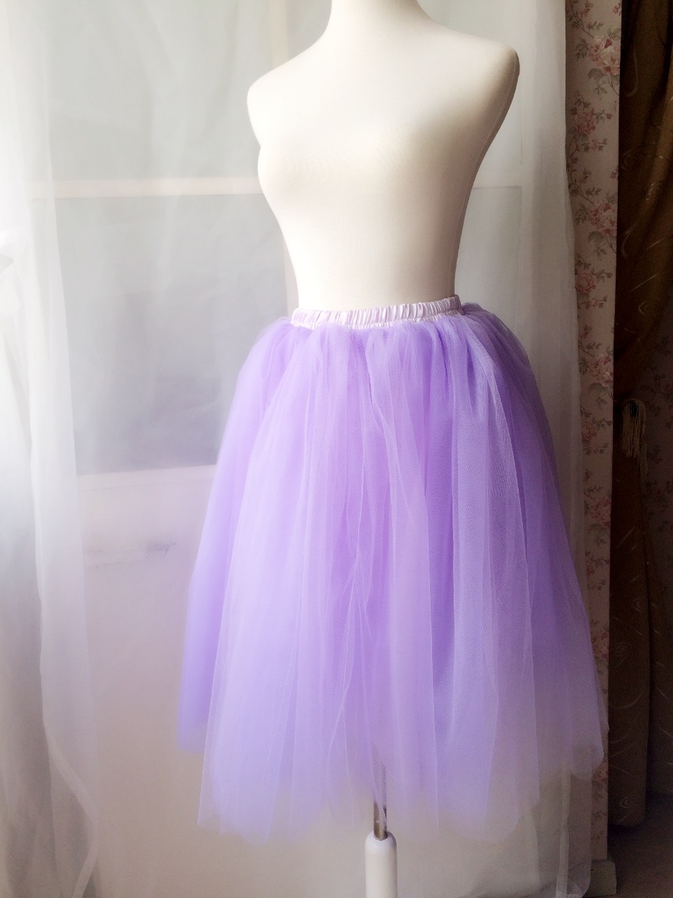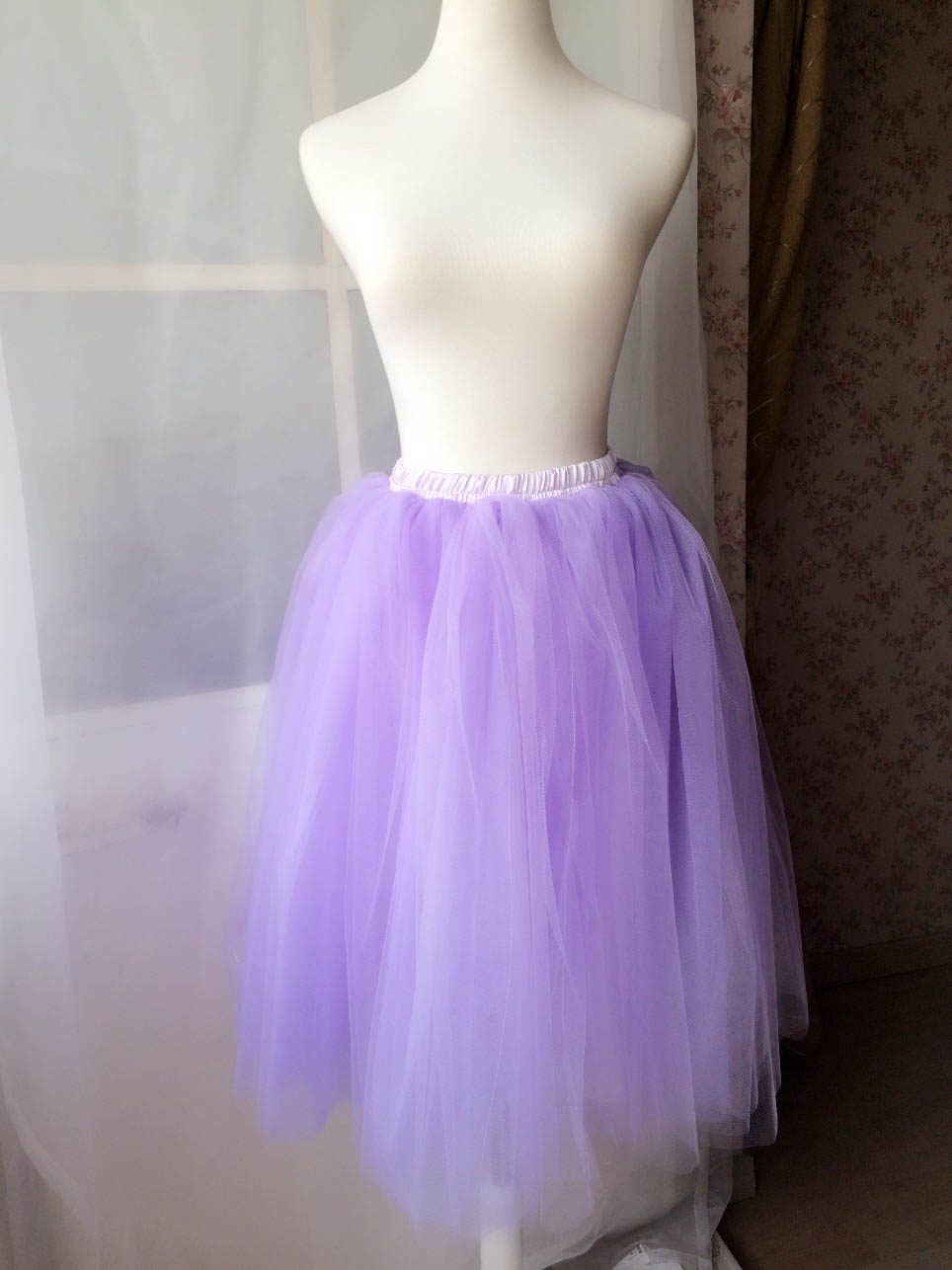 Lavender Knee Length Tulle Skirt Women Custom Plus Size Ruffle Tutu Midi Skirts