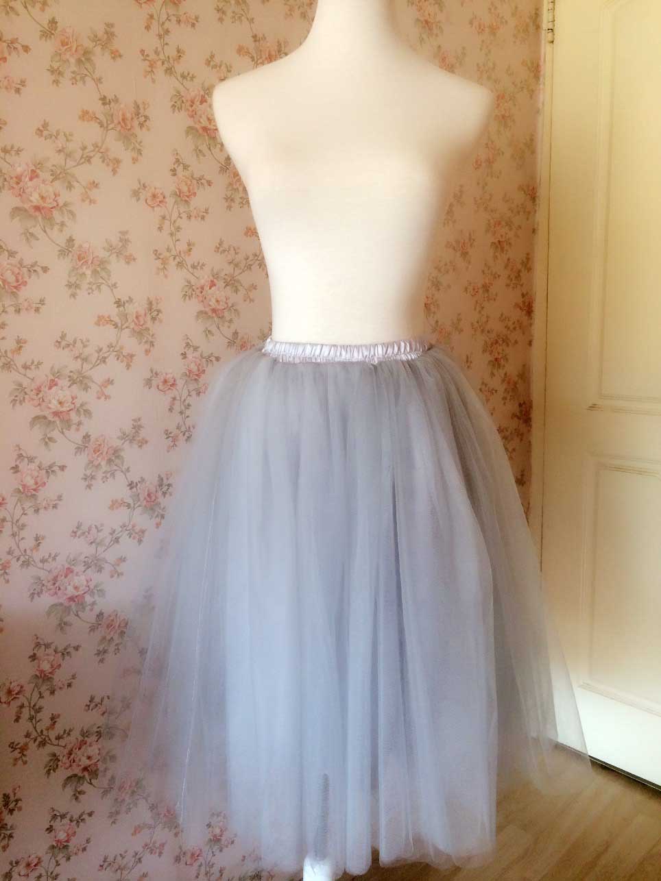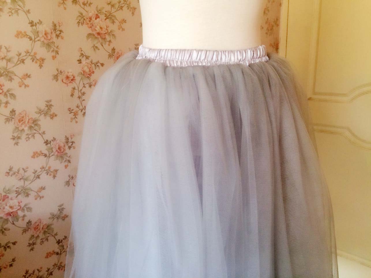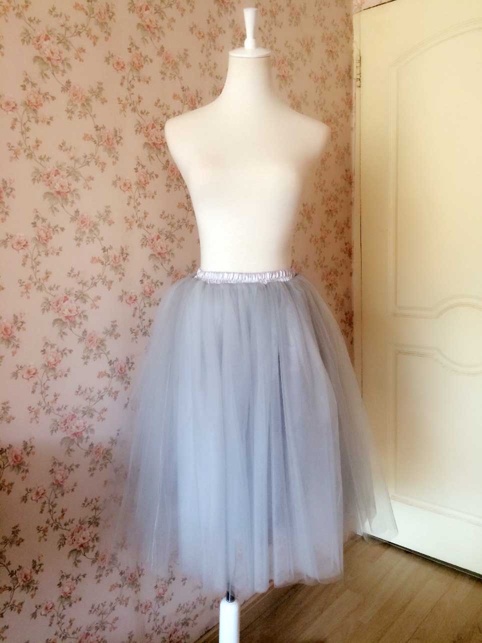 Light Gray Women 6 layer tutu White Midi Tulle Midi Skirt Black A-line Tutu Skirt Party Skirt Circle Tulle Skirt Plus Size