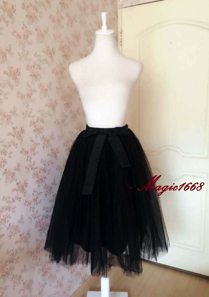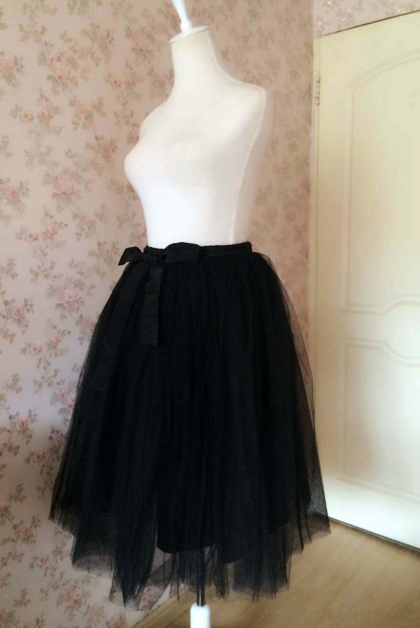 Black 6 layer tutu Midi Tulle Skirt Black Women A-line Plus Size Tutu Skirt Party Skirt Circle Tulle Skirt