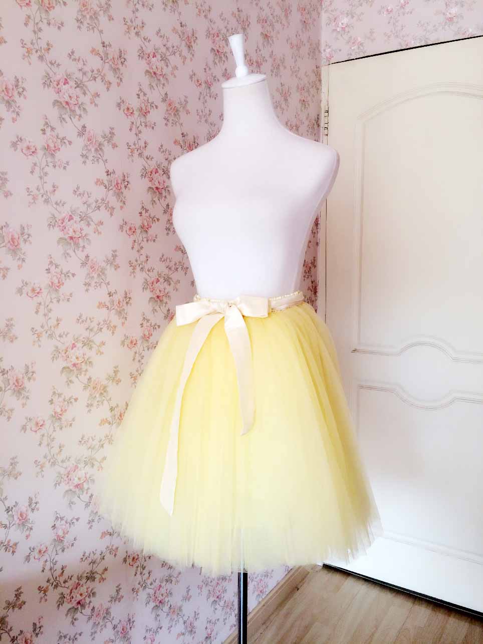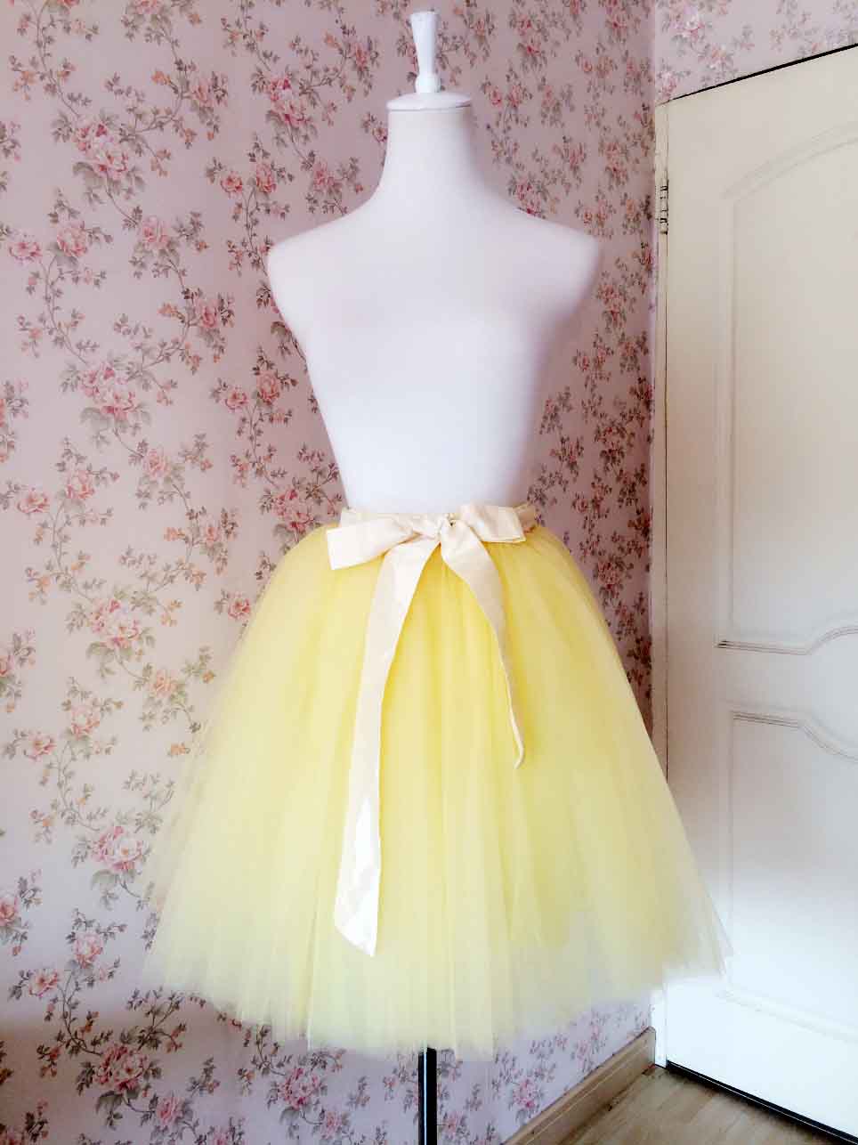 LIGHT YELLOW Women 4 layer tutu White Midi Tulle Midi Skirt Black A-line Tutu Skirt Party Skirt Circle Tulle Skirt Plus Size