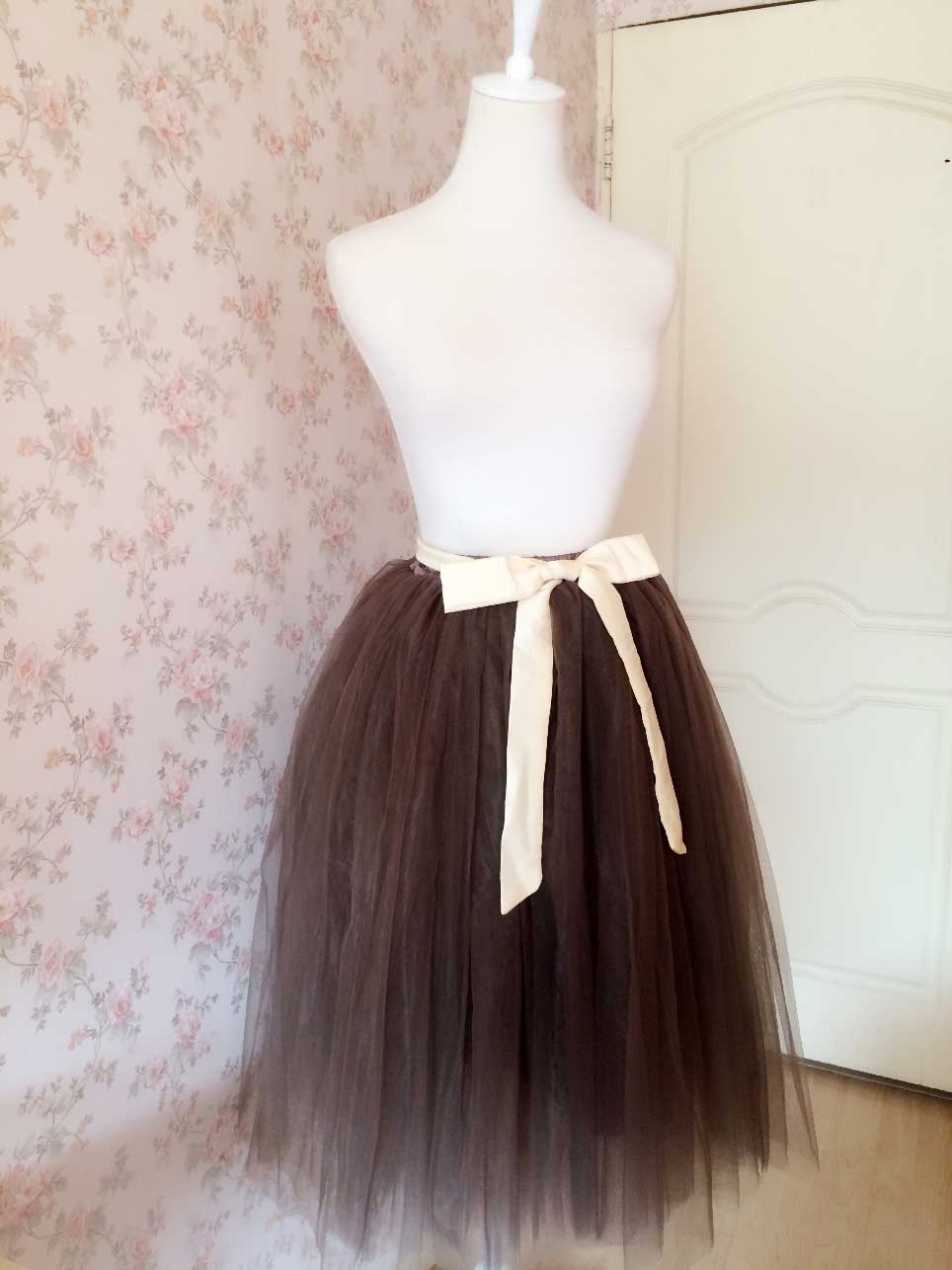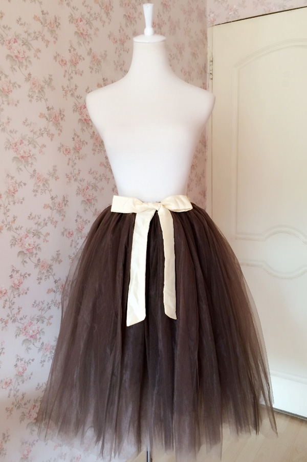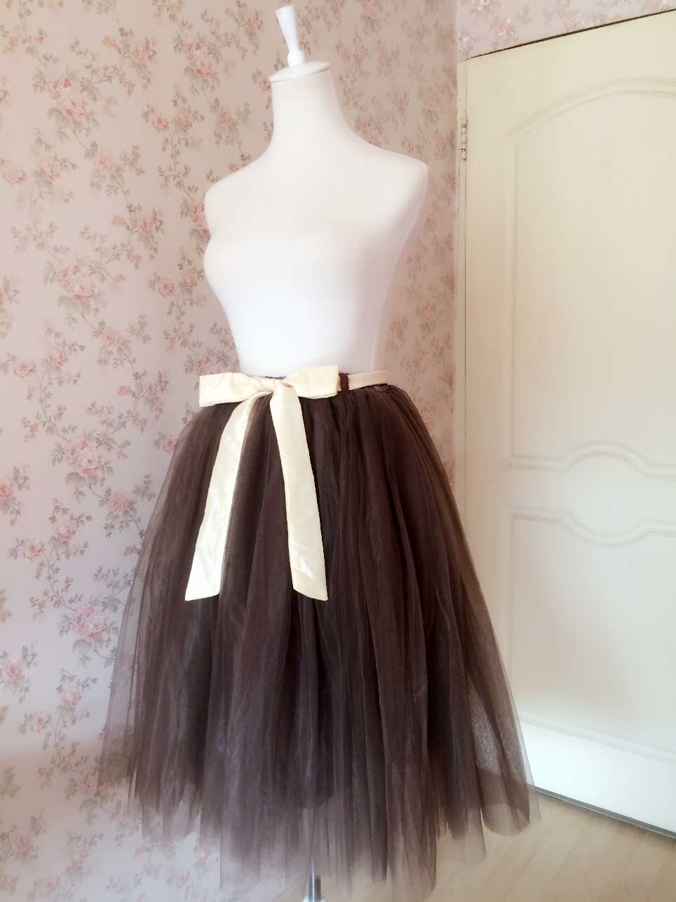 Women's Midi Tulle Skirt High Waist Tulle Skirt Party Midi Skirt Tea Length Tulle Tutu Skirt Coffee Brunette Elastic Waist MIDI Party Skirt, many colors for choice. Custom available, don't miss it!