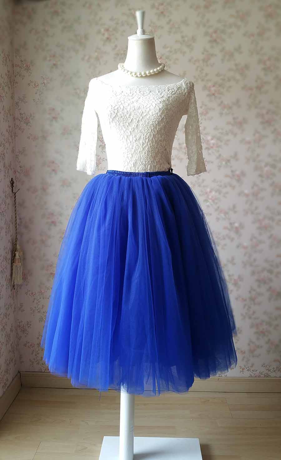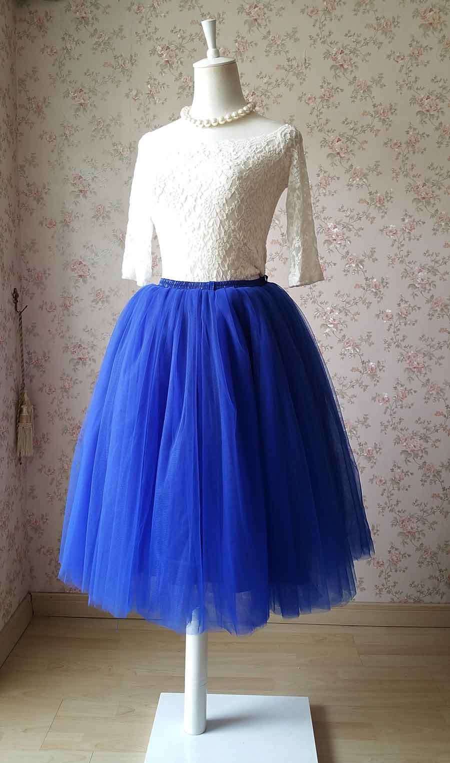 Women High Waist Tulle Skirt Party Midi Tulle Skirt Cobalt Blue Midi Tulle Skirt Plus Size Tutu Skirt A Line Ballet Tutu, Custom available