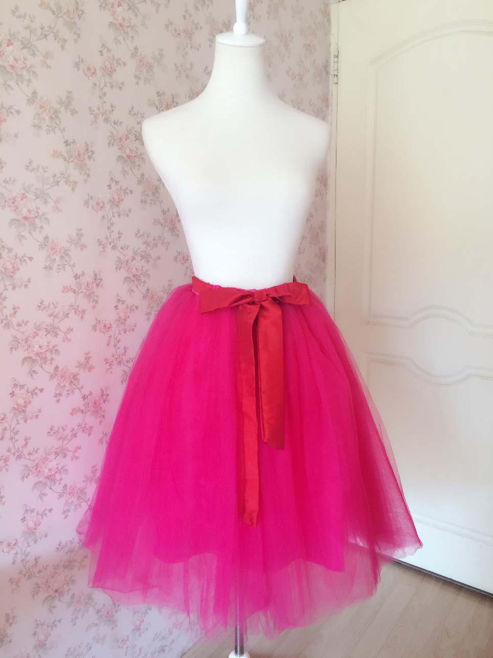 FUCHSIA Tulle Skirt HOT PINK Tutu Skirt Women Girls Tulle Tutu Skirt Party Tutu Skirt 4 Layered Tutu Midi Skirt Plus Size Elastic High Waist Midi Skirt with Bow, which fit for most of party, events, weddings.