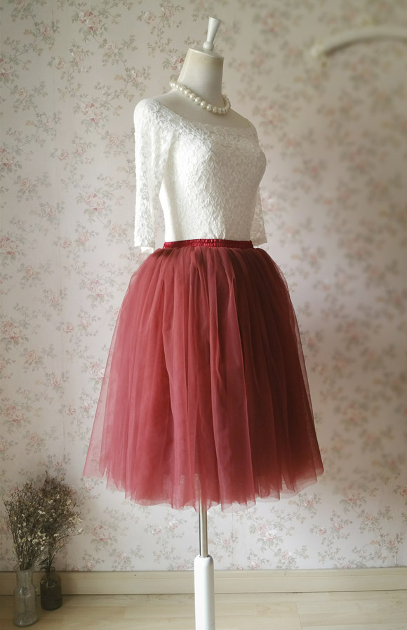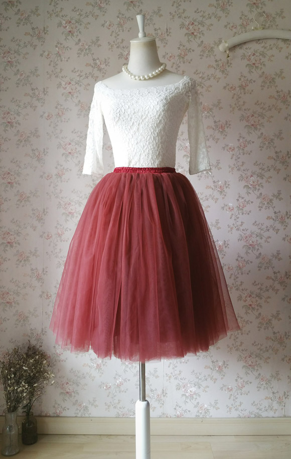 BURGUNDY Women 6 layer Midi Tulle Skirt Women Girl A-line Tutu Skirt Party Skirt Bridesmaid Puffy Tulle Skirt Outfit Plus Size
