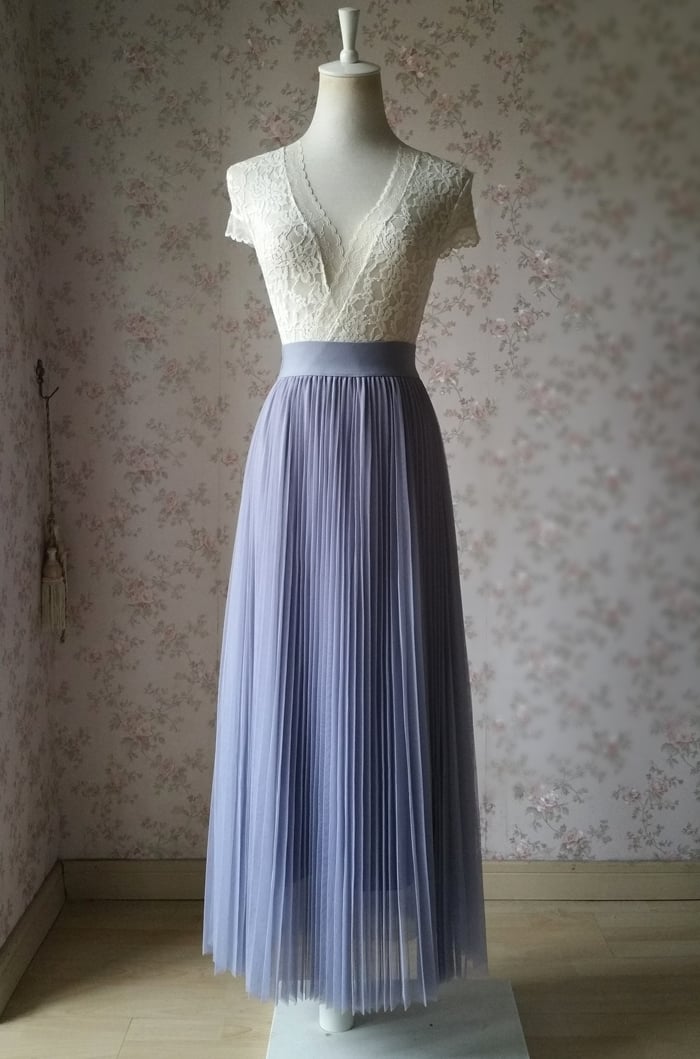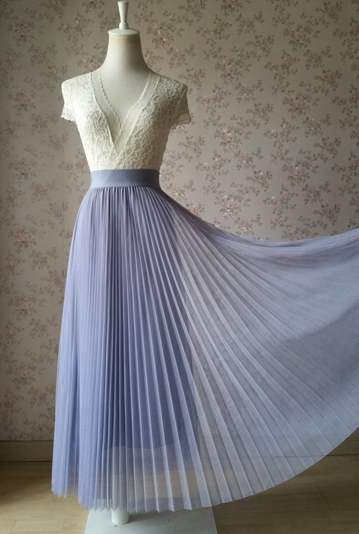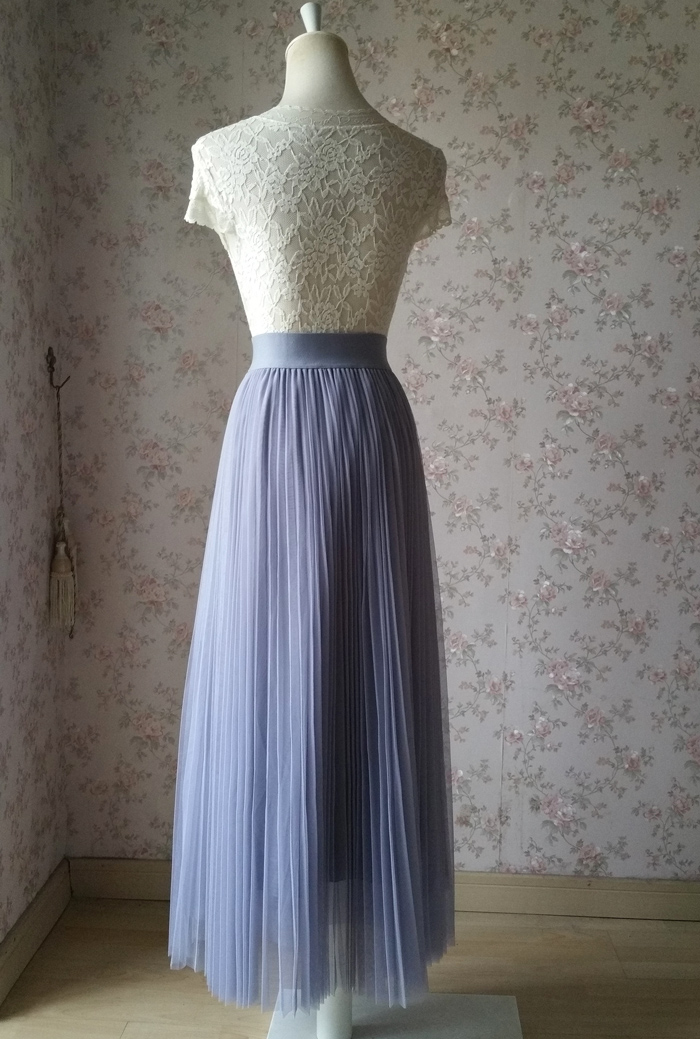Light Gray Full Pleated Tulle Skirt Women Party Tulle Skirt Wedding Bridesmaid Tulle Skirt Plus Size