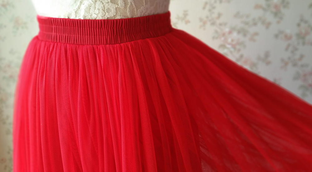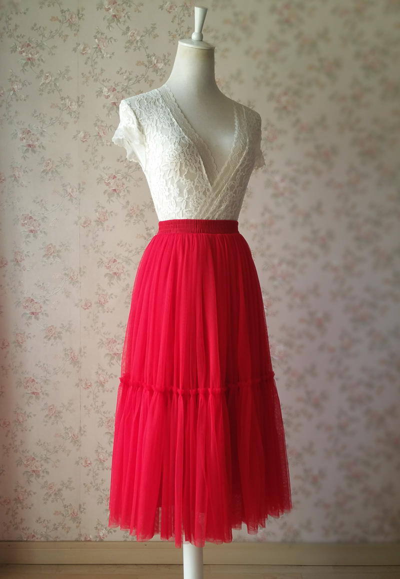 Red Tiered Midi Tulle Skirt Women Lady Full Tulle Midi Skirt Plus Size Tulle Skirt Outfit