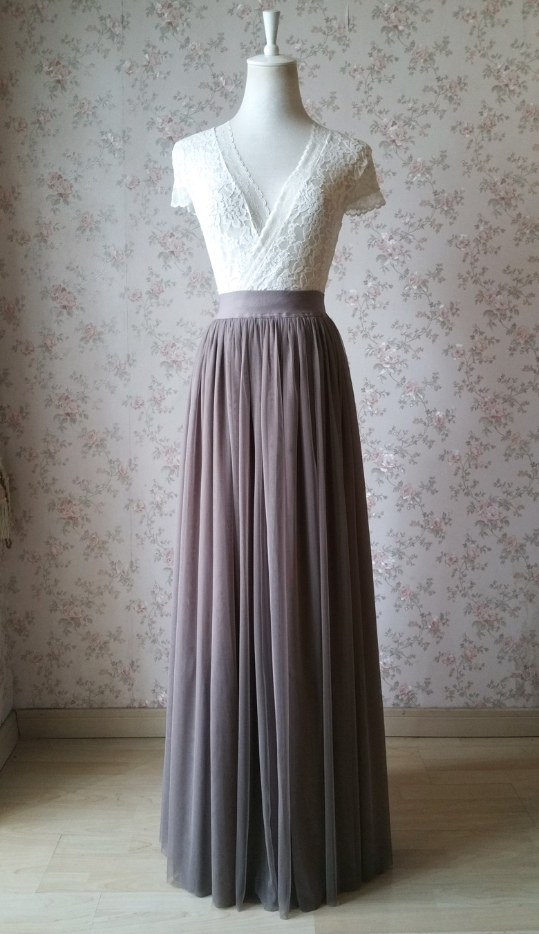 Coffee Brown Maxi Long Tulle Skirt Plus Size Full Tulle Skirt Plus Size Floor Length Tulle Skirt