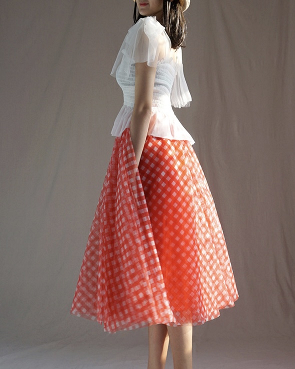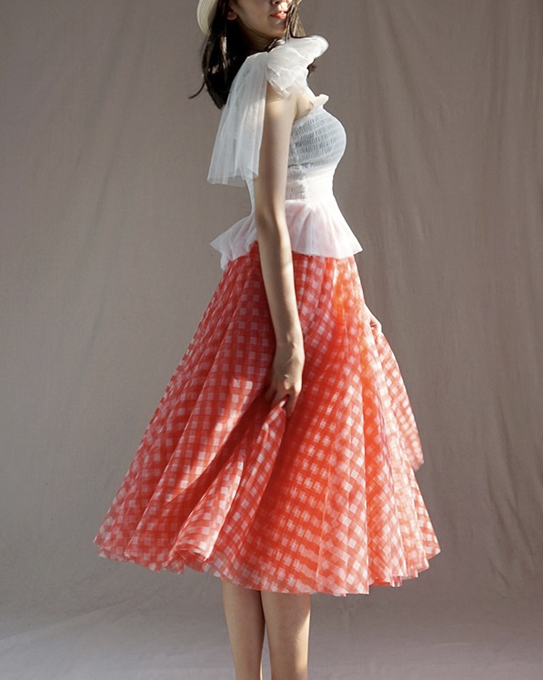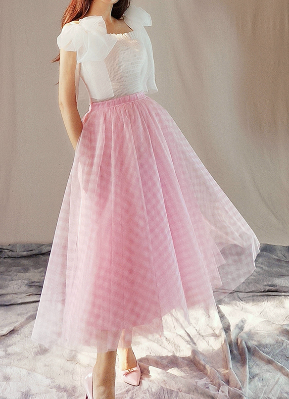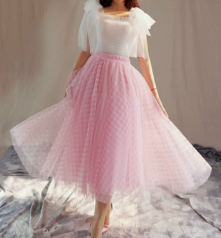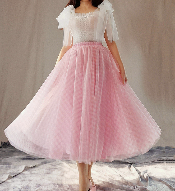 Pink Tulle Midi SKIRT, Women Midi Skirt, TEA LENGTH TULLE SKIRT, Tulle Tutu Skirts,Plaid Skirts. Unique Plaid Pattern, Any Size, Custom Available, Don't miss it!