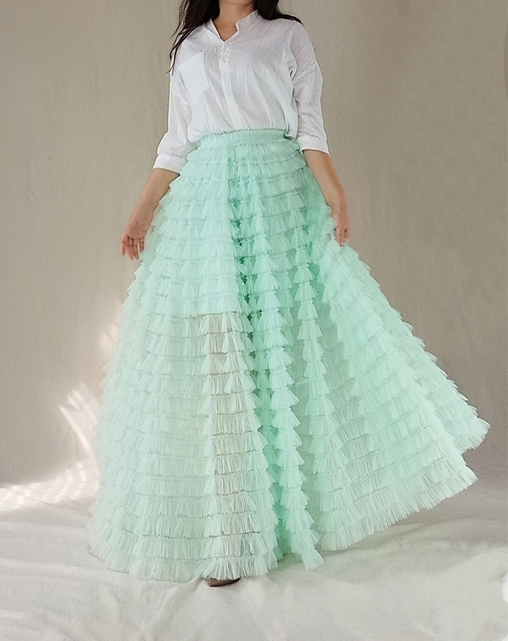Women Maxi Tiered Tulle Skirt High Waist Party Prom Tulle Skirt Wedding Bridal Tulle Outfits Mint Green Maxi Skirt