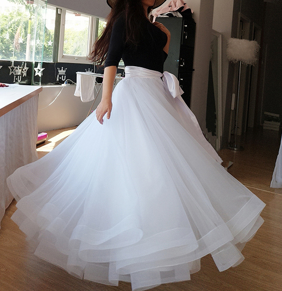 Women Slit Tulle Outfit Maxi Open Skirt Prom Party Over Skirt White Puffy Wedding Tulle Skirt Bridal Outfit Custom High Waist