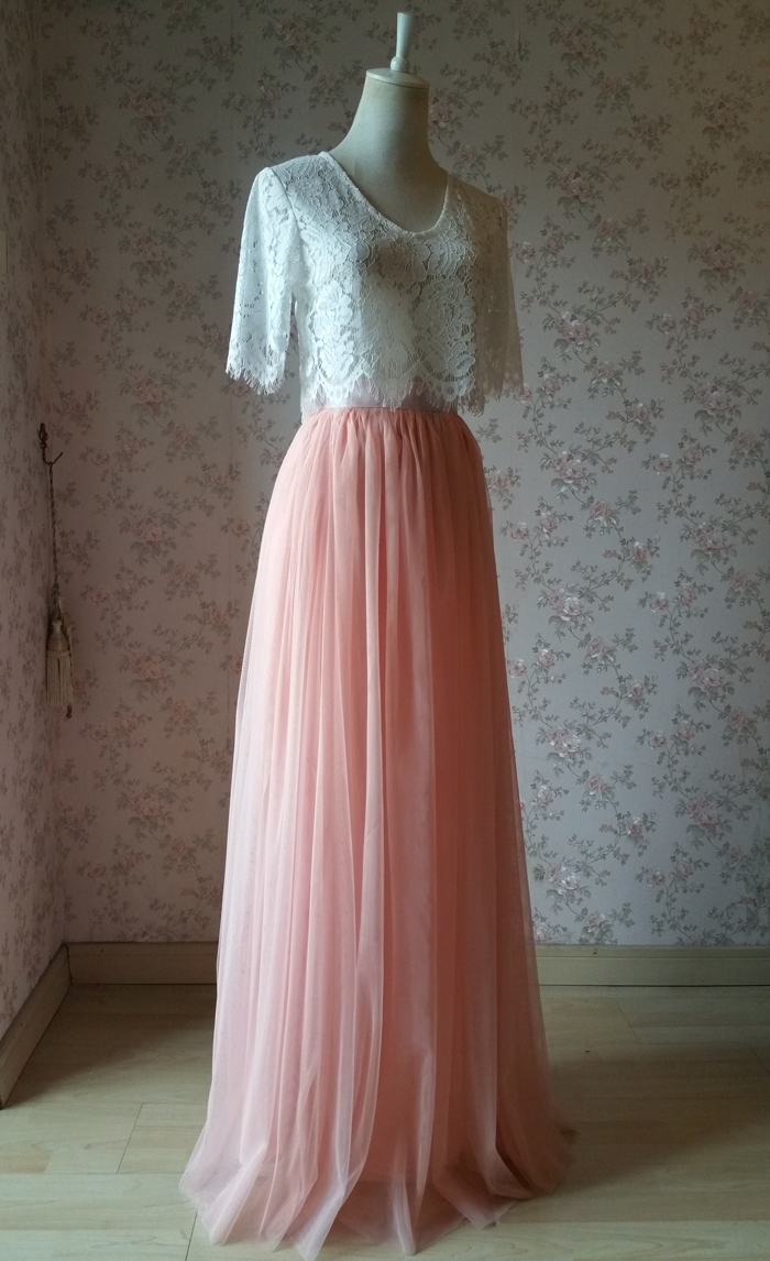 Women's Peach Pink Maxi Tulle Skirt Floor Length Wedding Party Tulle Tutu Skirt Outfits Plus Size