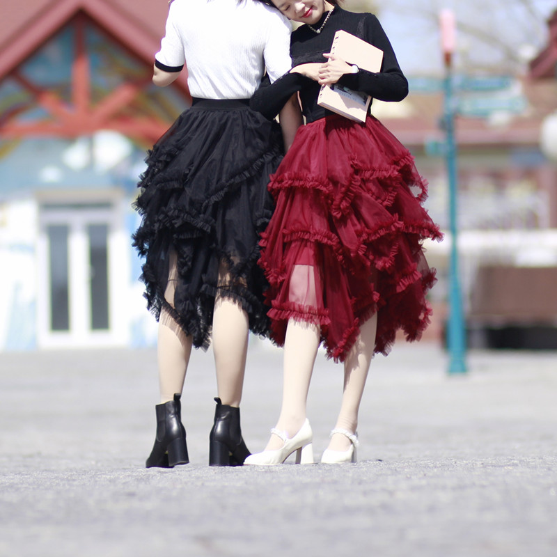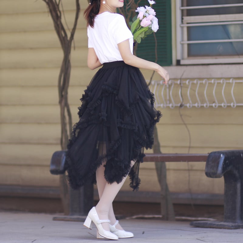 Women High Waisted Hi-lo Tiered Tulle Skirt Custom Romantic Layered Tulle Skirt Holiday Outfit, Black Red White