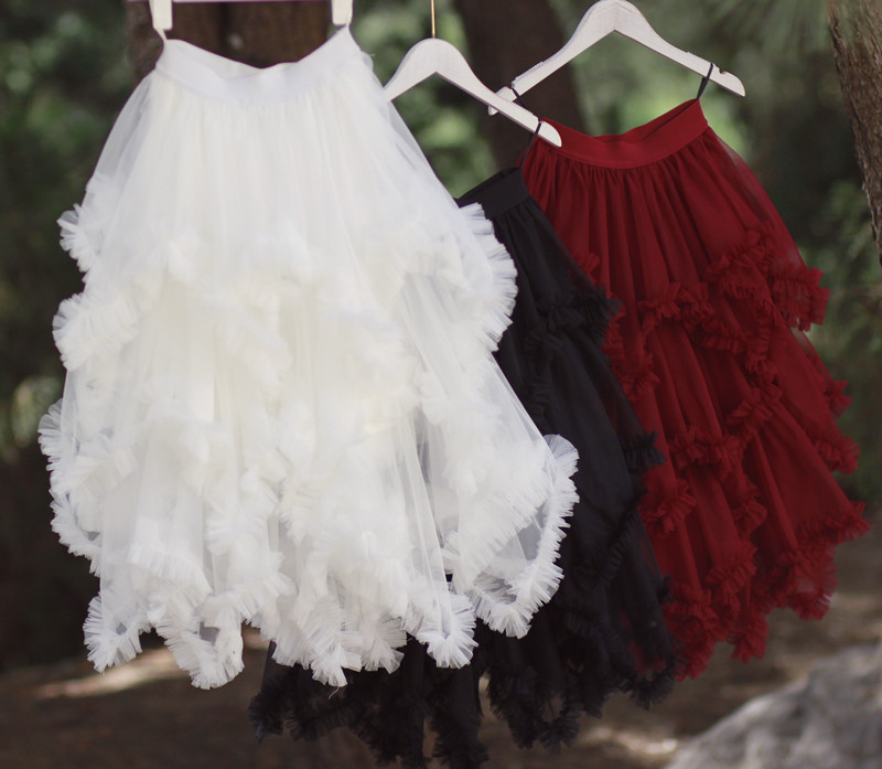 Women Hi-lo Tulle Skirt Holiday Outfit High Waisted Tiered Tulle Skirt Black White Wine Red Tulle Tutu Outfit Custom Romantic Party Tulle Skirt Wedding Outfit, Tiered Mesh Skirt Ballet Skirt. Bridesmaid Tulle Skirt Outfit. High Waisted, A-line, Custom Plus Size available