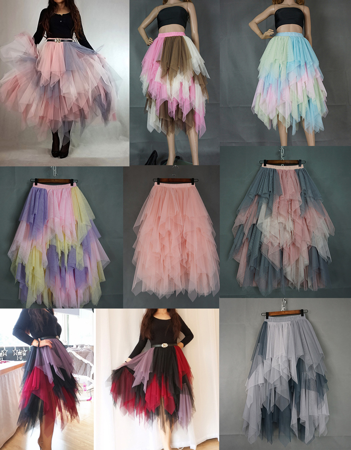 Women's Long Tiered Skirt Hi-lo Tiered Tulle Tutu Skirt Red Pink White Party Skirt Tulle Dance Skirt Creative Tulle Wedding Guest Skirt, Tiered Mesh Skirt Ballet Skirt. Wedding Party Bridesmaid Outfit. High Waisted, A-line, Custom Plus Size