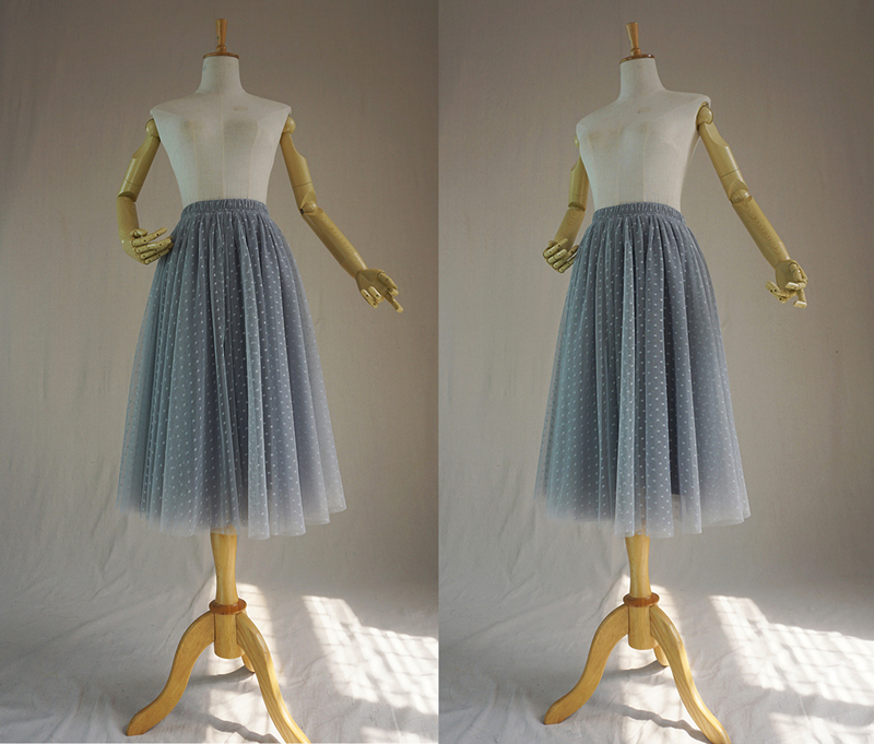 GRAY MIDI Tulle Skirt Women's Polka Dot Tulle Tutu Midi Skirt Gray Wedding Bridesmaid Tulle Skirt Party Skirt