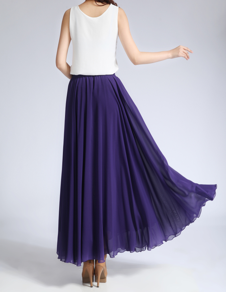 Women Long Chiffon Skirt Summer Chiffon Party Skirt Plus Size Chiffon Skirt Purple Dark Green