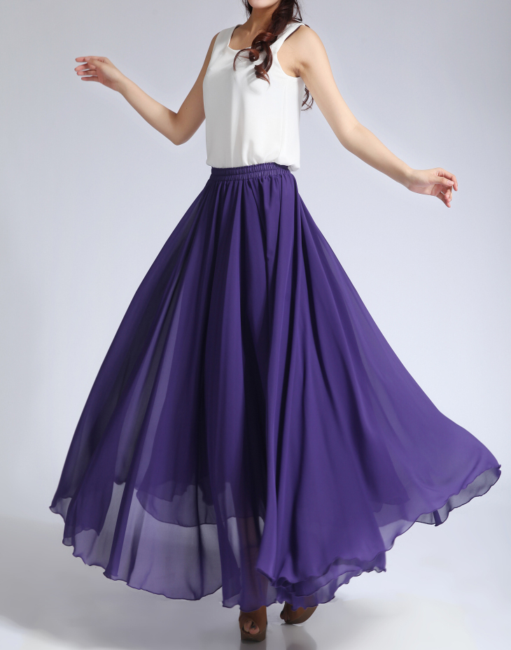 This is very flowing maxi Skirt with double-layered chiffon fabric. The elastic waist easily fits different figures. In wind, bring people relax and romantic feeling. When you walks, this skirt also quiet sways, I think you will love it when you wear it. Don't miss it!