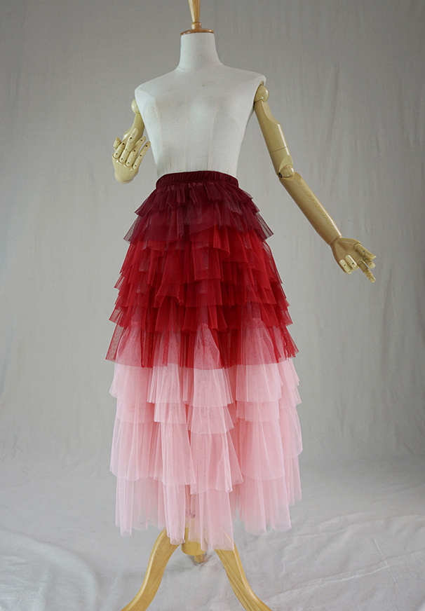 Red Pink Tiered Long Tulle Skirt Women High Waisted Tiered Tulle Tutu Skirt Holiday Skirt Tulle Party Skirts Layered Tulle Skirt Outfits