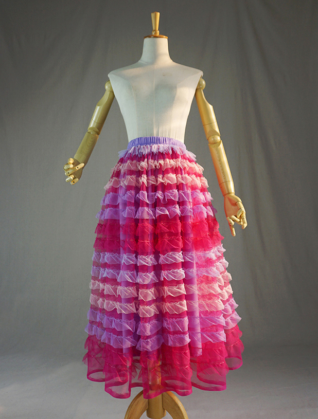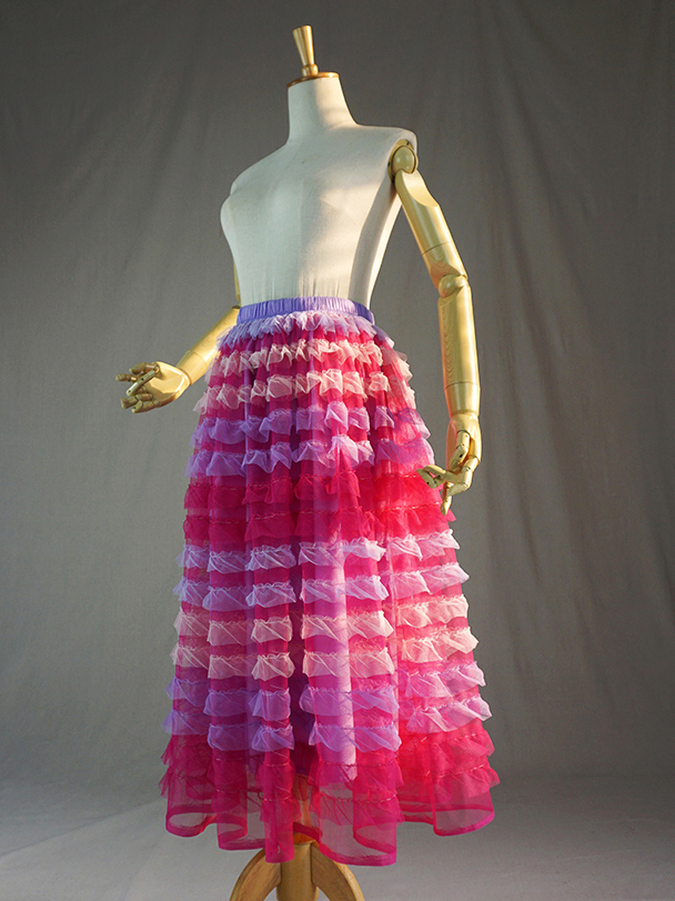 ADULT TIERED TULLE SKIRT, RAINBOW TUTU SKIRT HOLIDAY SKIRT PARTY SKIRT TULLE OUTFITS Tiered Mesh Skirt, Net Skirt. HOT PINK TUTU SKIRT, Tulle Midi Skirt, Wedding Party Bridesmaid Skirts. High Waisted, A-line, Regular Petite Plus Size