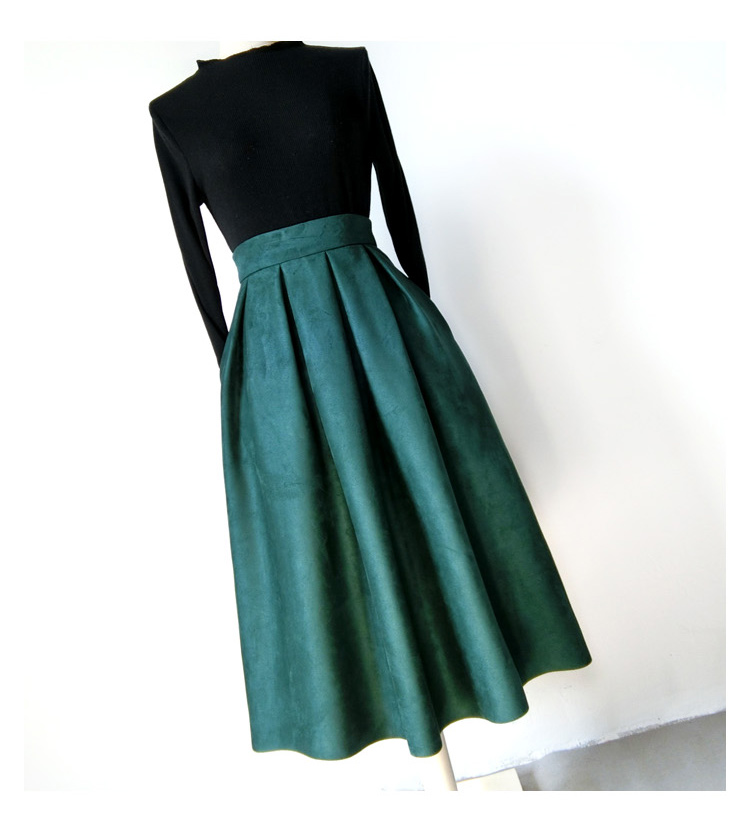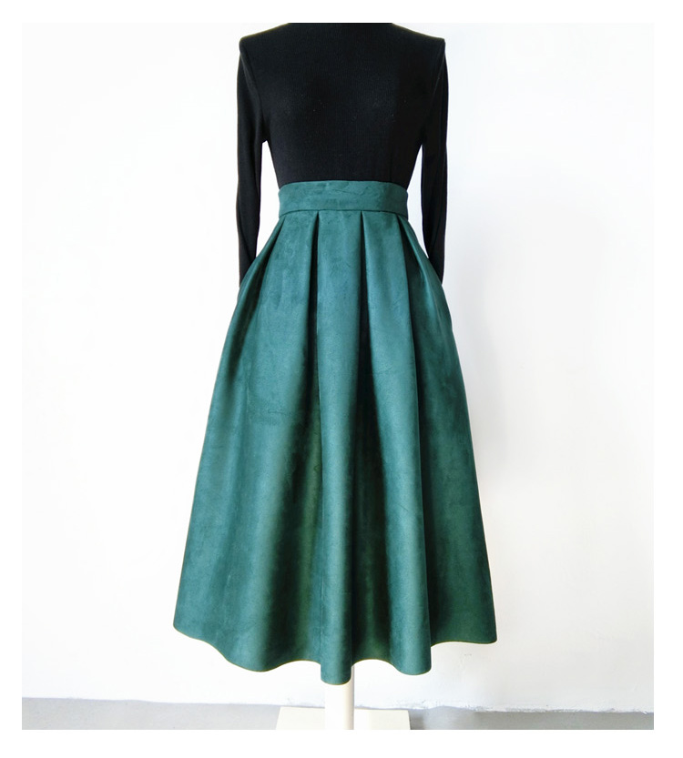 WOMEN PLEATED MIDI SKIRT SUEDE SKIRT AUTUMN WINTER PLEATED PARTY SKIRT HIGH WAIST SUEDE PLEATED SKIRT DARK GREEN FULL PLEATED SKIRT PLUS SIZE WOMEN PLEATED SKIRT Customized Long skirt for women is our shop's new items. Simple cutting Aline Tea Length Midi Skirt with 50s Style Skirts is easily match any tops. It can keep you warm very well and look still fashionable and elegant.