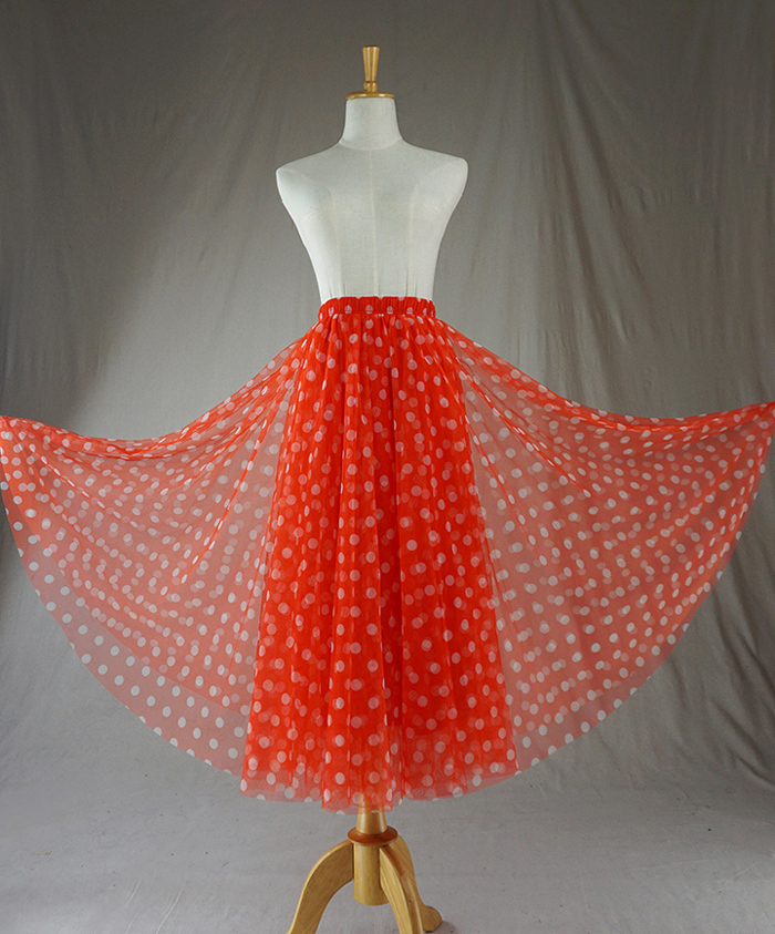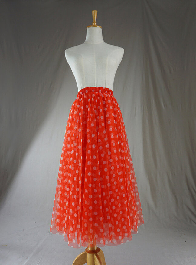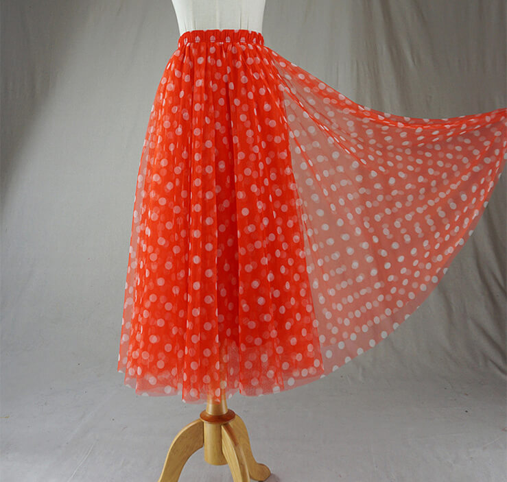 Women Orange Tulle Skirt Polka Dot Circle Skirt High Waisted Orange Dot Party Skirt Plus Size Tutu Outfit