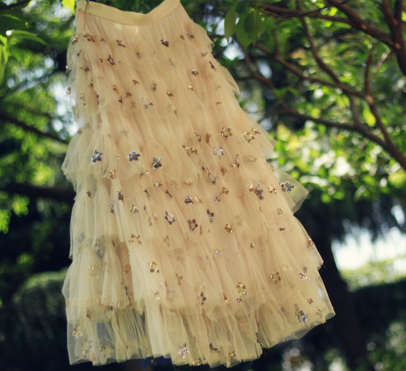 Women CHAMPAGNE GOLD Sequin Tiered Tulle Skirt Tiered Tutu Party Outfits Plus Size Tutu Tulle Skirt