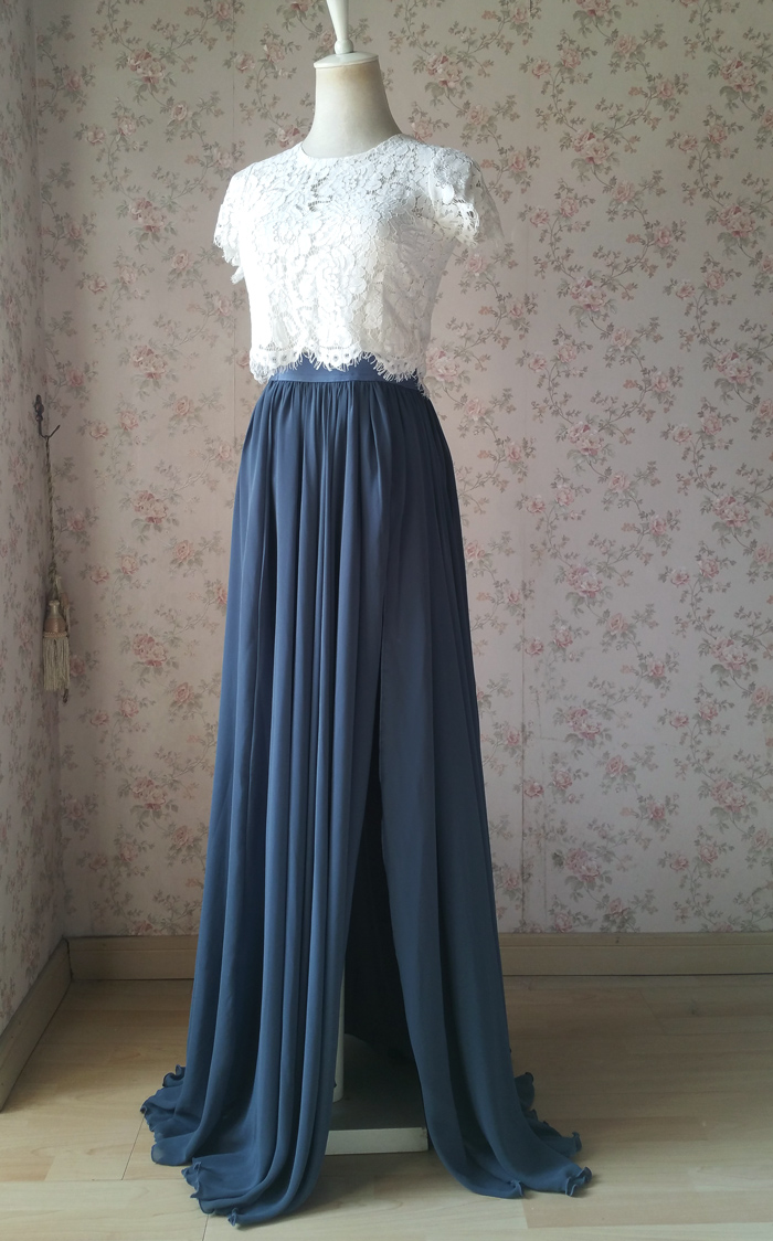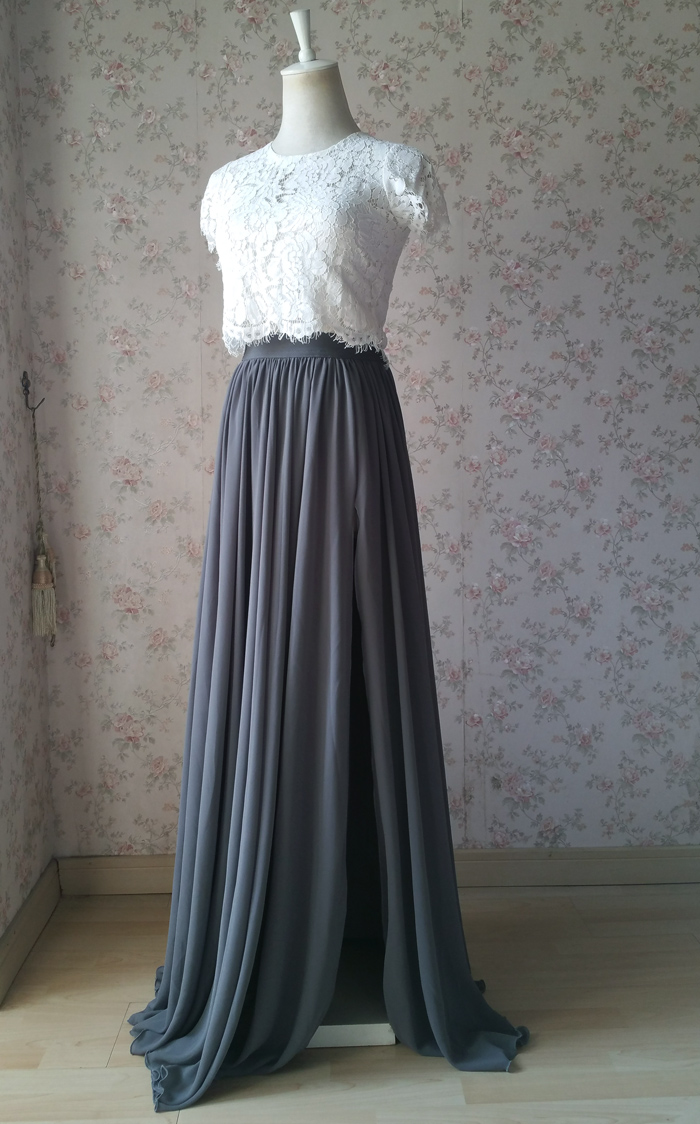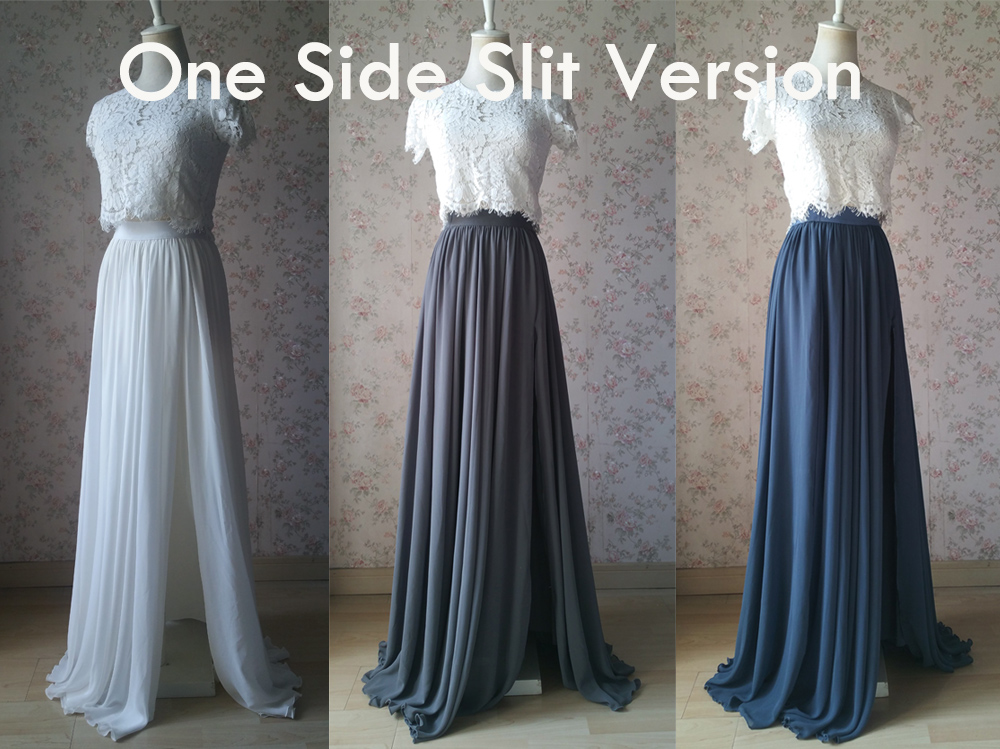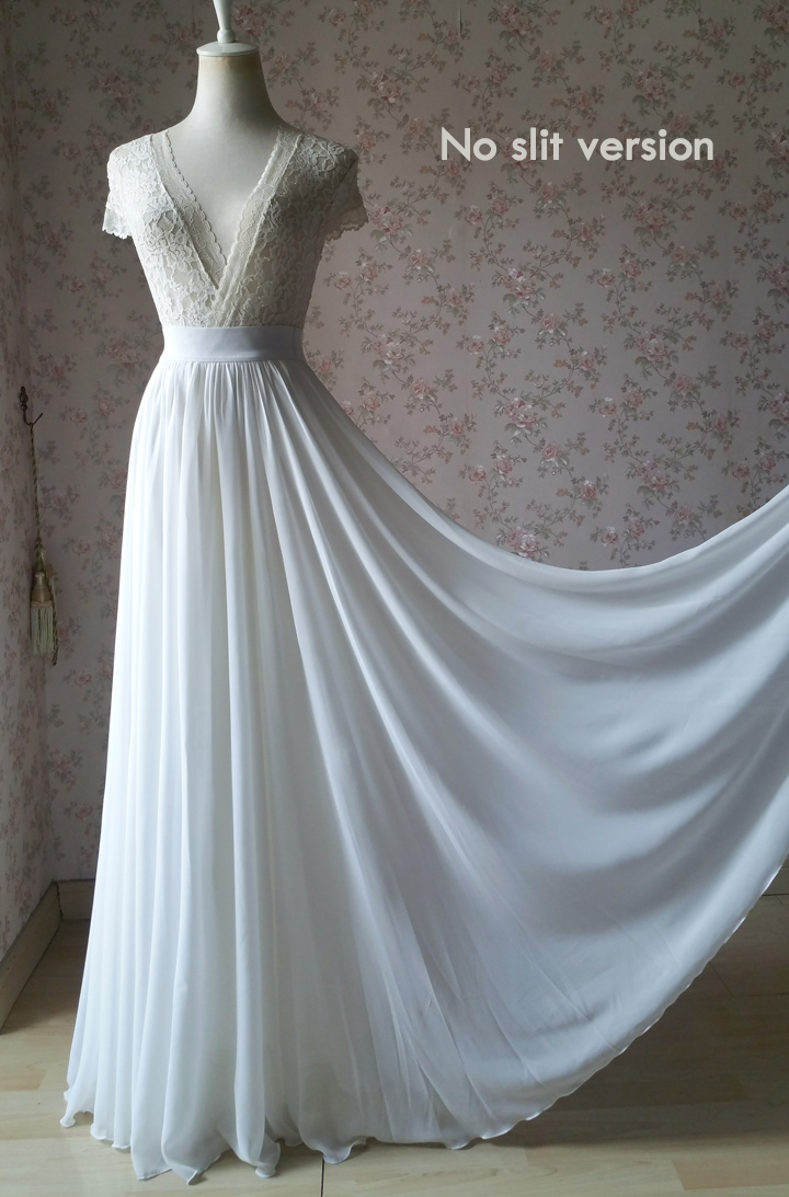 Summer Wedding Chiffon Skirt Slit White Bridesmaid Chiffon Skirts Maxi Slit Outfit Boho wedding Beach Wedding Skirt Plus Size