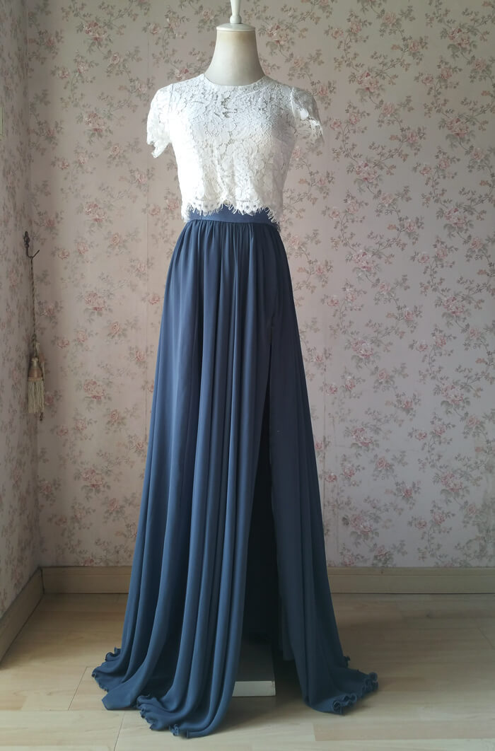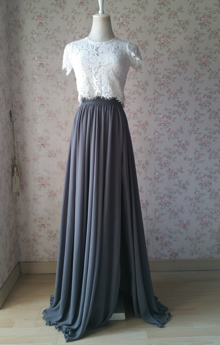 Gray Wedding Chiffon Skirt Slit Gray Bridesmaid Chiffon Skirts Maxi Slit Outfit Beach Wedding Party Skirt Plus Size