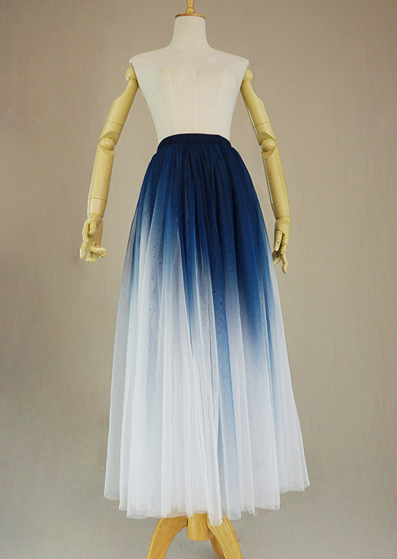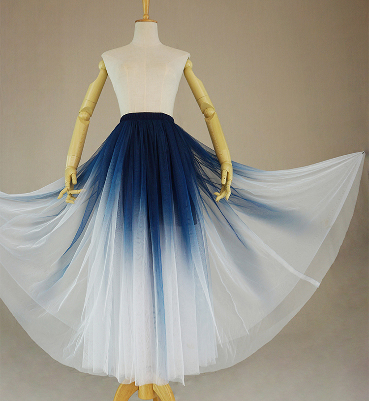 Adult Blue and White Tie Dye Tulle Skirt High Waisted A-line Tie Dye Tulle Skirt Evening Long Skirts Plus Size