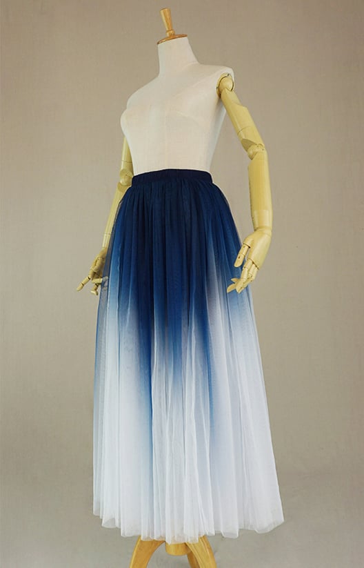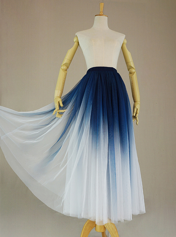ADULT TIE DYE TULLE SKIRT BLUE AND WHITE DYE TULLE SKIRT UNIQUE LONG EVENING PARTY TULLE SKIRT OUTFIT A-line Style FULL CIRCLE DYE TULLE SKIRT WEDDING SEPARATES Floor Length Tulle Skirt, Custom for any size, Maxi length, elastic high waistband, best choices for wedding, holiday and evening party, just unique and creative, don't miss it!