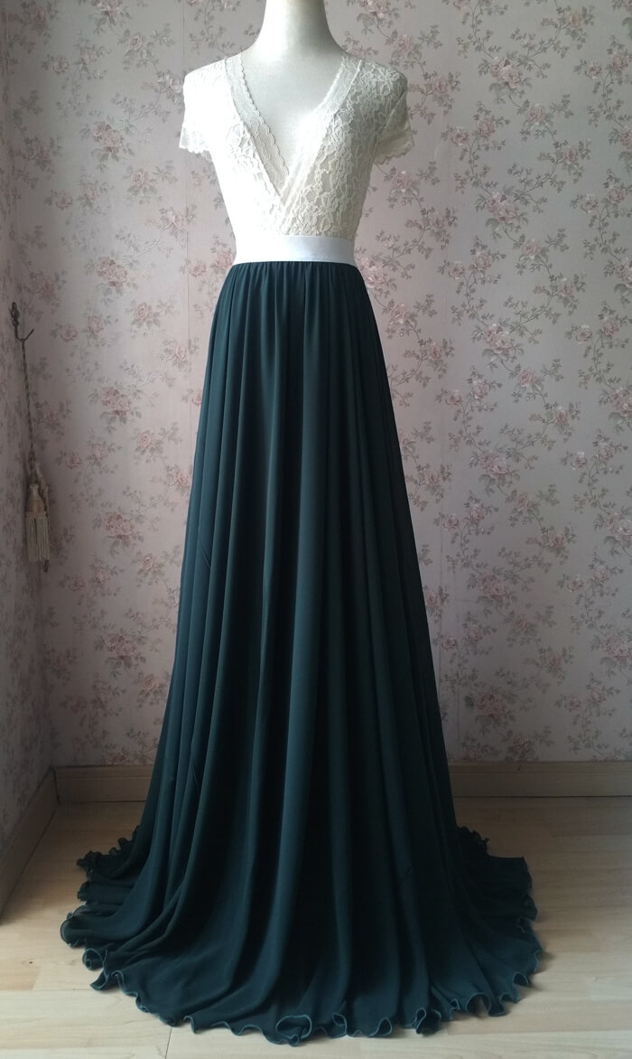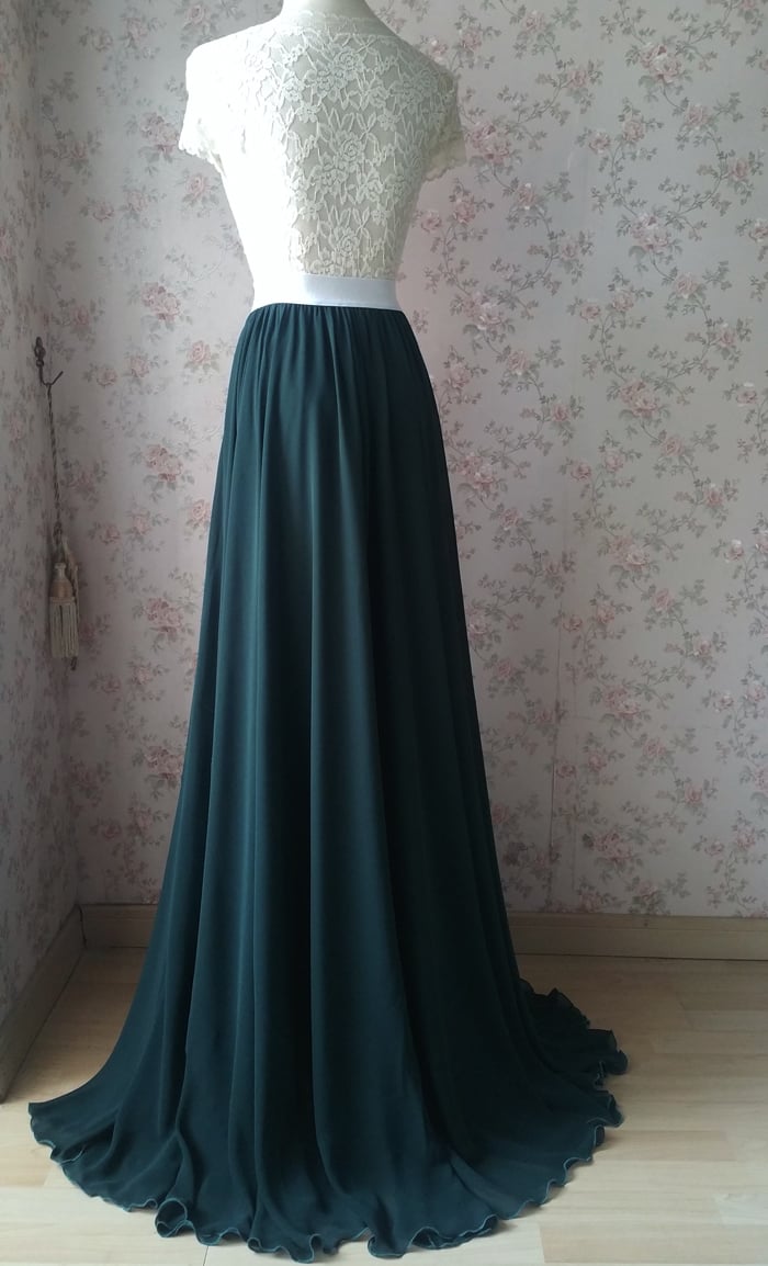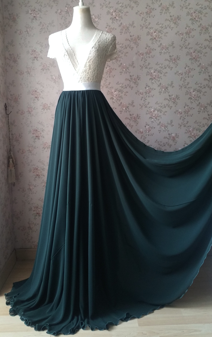 WOMEN CHIFFON MAXI SKIRT PLUS SIZE MAXI CHIFFON SKIRT DARK GREEN CHIFFON SKIRT DARK GREEN WEDDING Skirt Outfit Dark Green Bridesmaid Skirts, Over 100 colors for choices, Best choices for wedding photo shooting