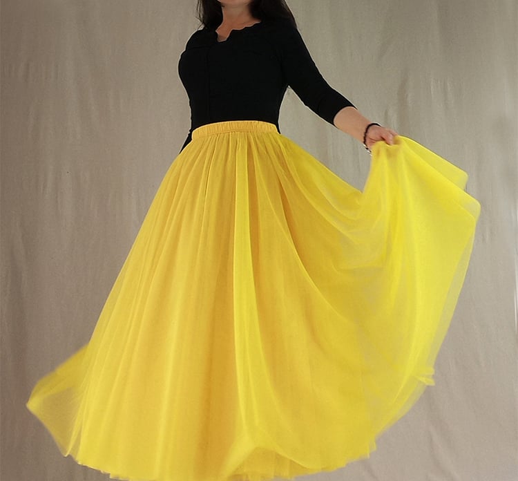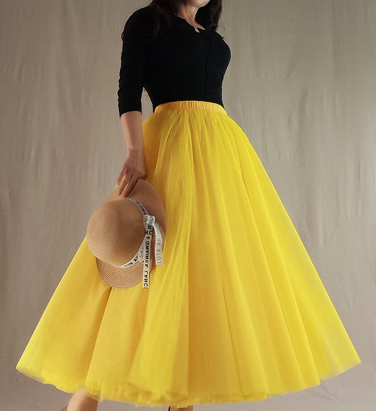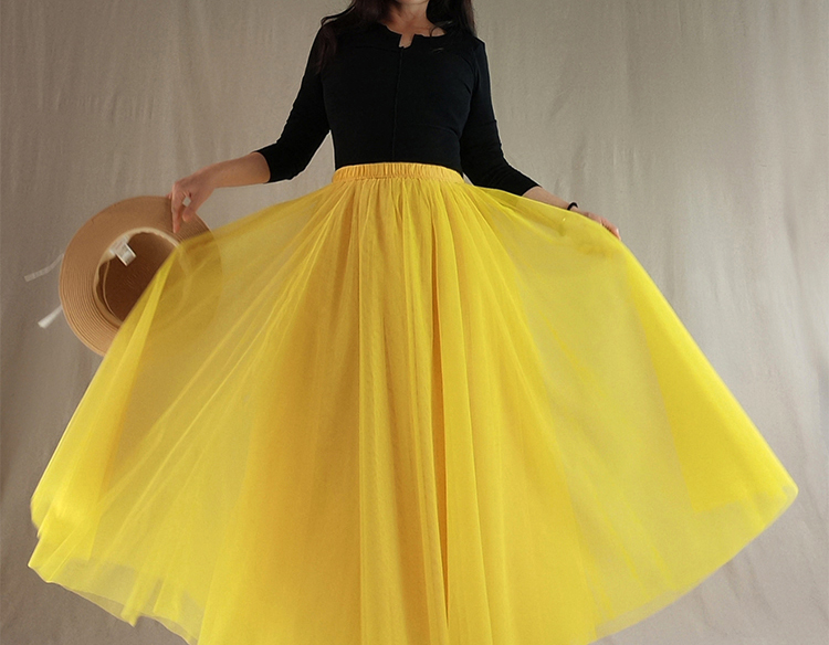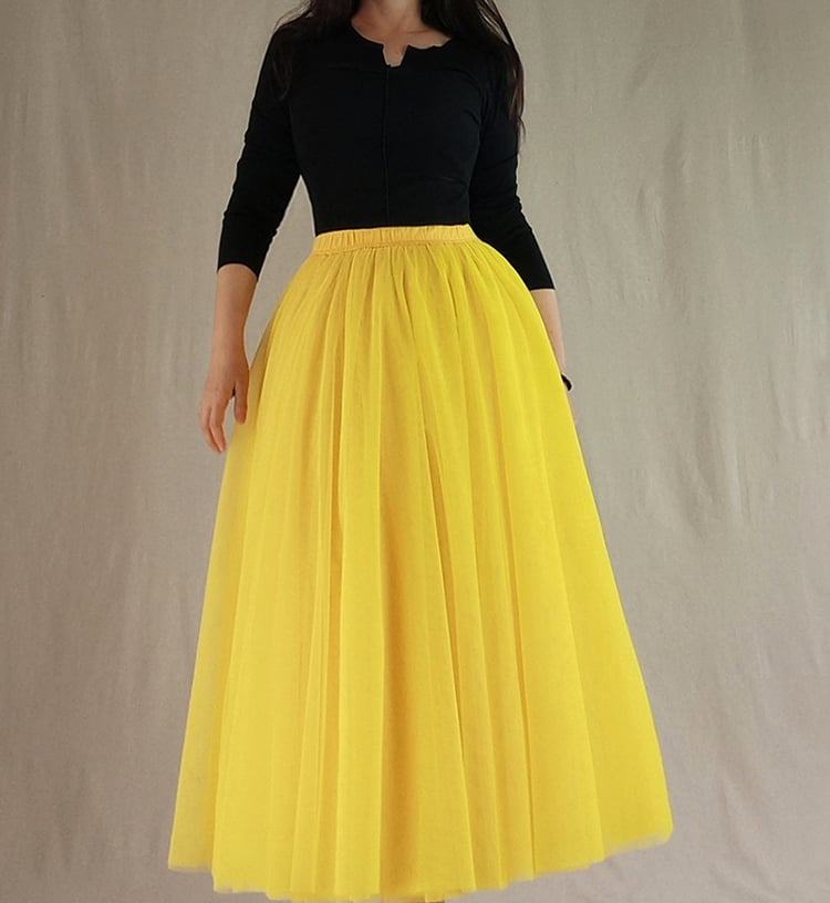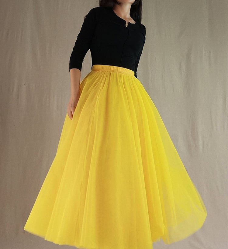 Yellow Long Tulle Skirt High Waisted Layered Tulle Skirt Yellow Holiday Skirt Outfits Wedding Tulle Skirt