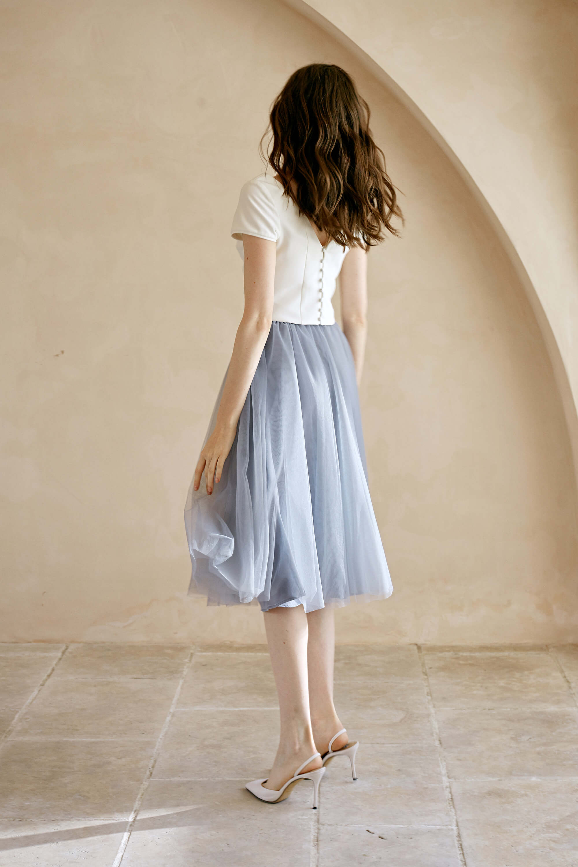 Gray Floor length Tulle Skirt High Waisted Layered Tulle Skirt Wedding Tulle Skirt Outfit Bridal Bridesmaid Tulle Skirt