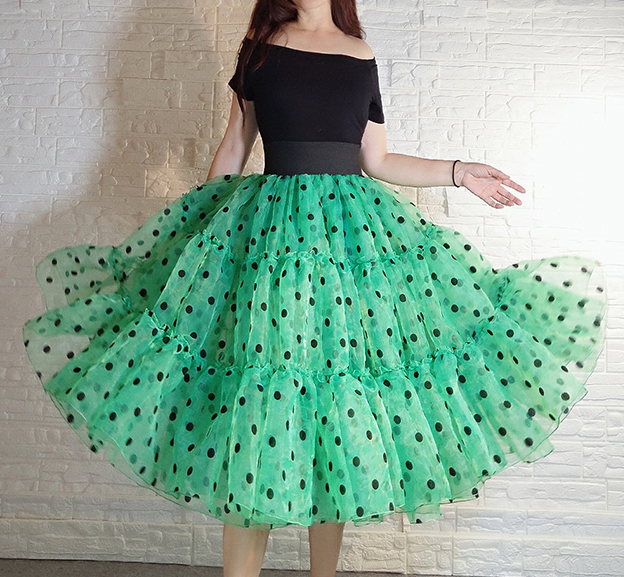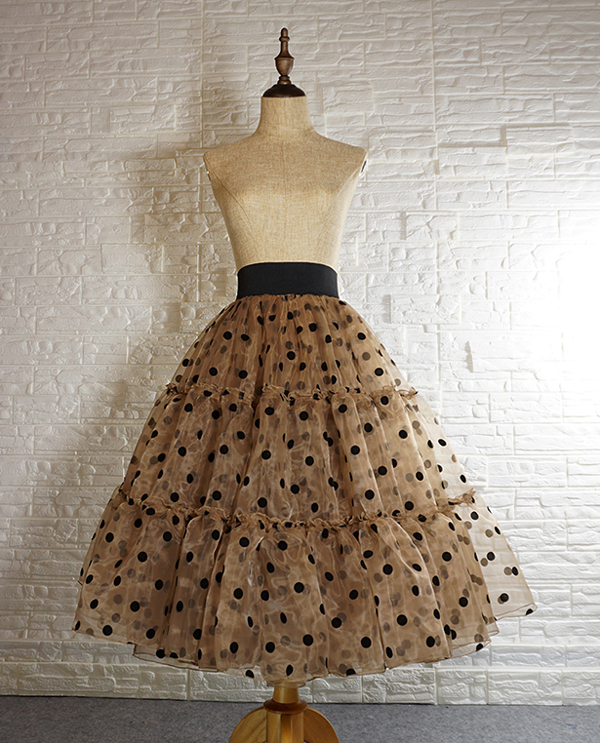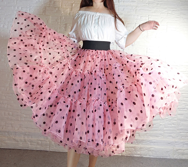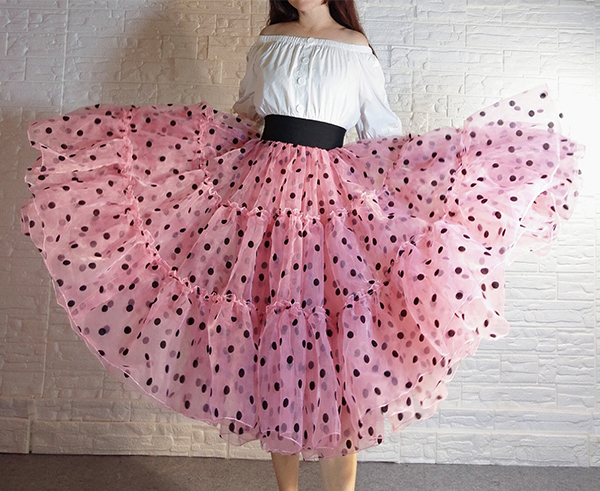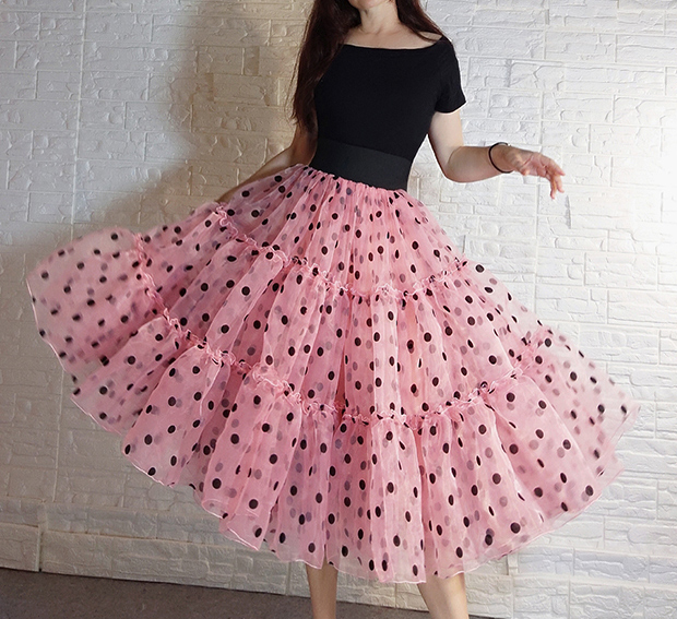 Women Pink Polka-Dot Tutu Skirt A-line Layered Plus Size Puffy Party Midi Skirt Outfit