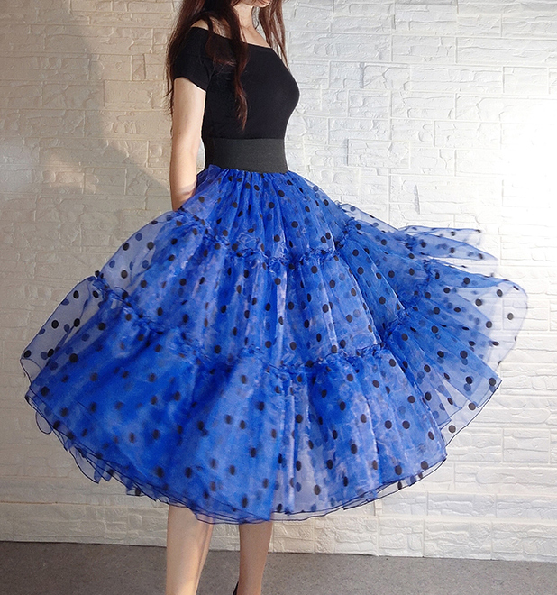 WOMEN GIRL POLKA DOT MIDI TULLE SKIRT PINK POLKA DOT TULLE SKIRT A LINE PUFFY TUTU SKIRT TULLE MIDI SKIRT OUTFIT ROYAL BLUE Tulle Midi Skirt, ROYAL BLUE POLKA DOT SKIRT Wedding Guest Skirt, Bridesmaid Tulle Skirts, Dance Tutu. High Waisted, Custom Plus Size