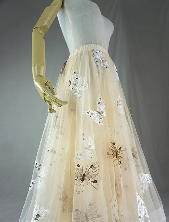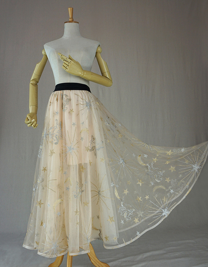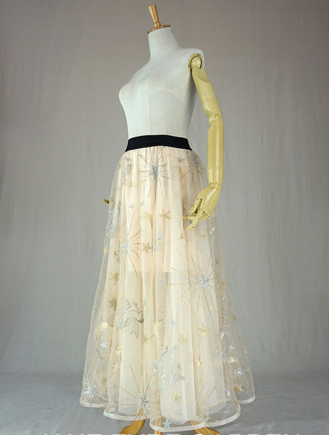 Ivory Embroidery Tulle Maxi Skirt Outfit Layered Wedding Party Long Tulle Skirt Photo Shoot Tulle Skirt
