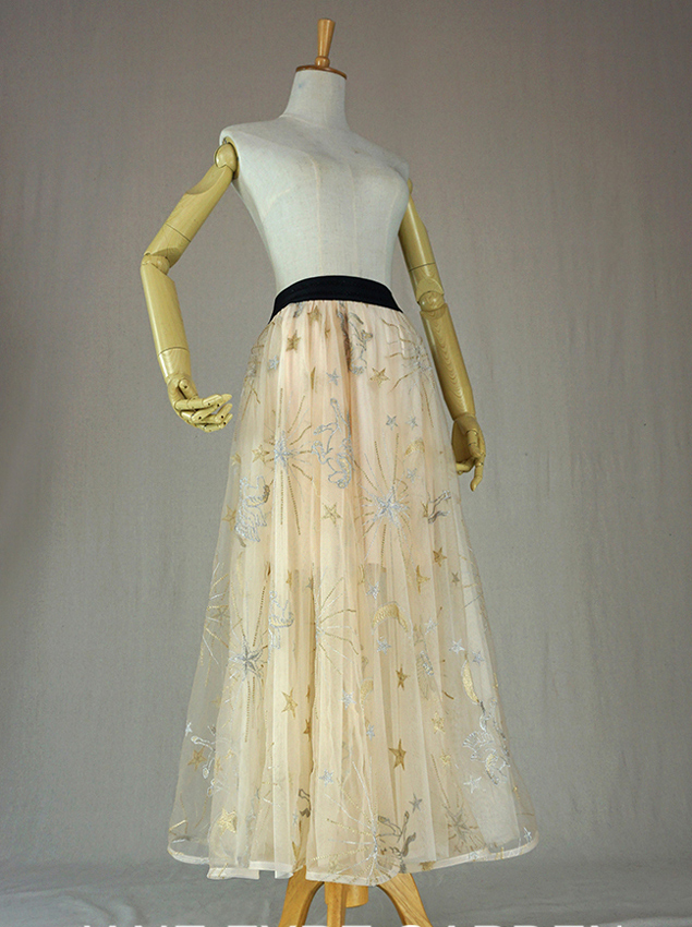 * This maxi dress is made layered top quality Tulle and one piece of silky satin lining as inner layer, full trimmed, which let the skirt looks very fairy and elegant.