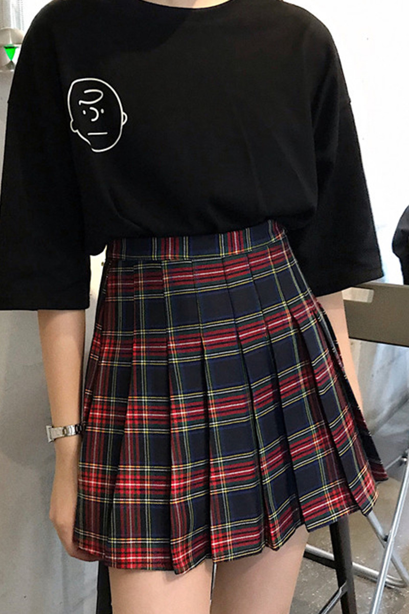 Women Girl Mini Plaid Skirt High Waisted Green Plaid Pleated Plus Size Plaid Tennis Skirt Green Plaid Holiday Outfit