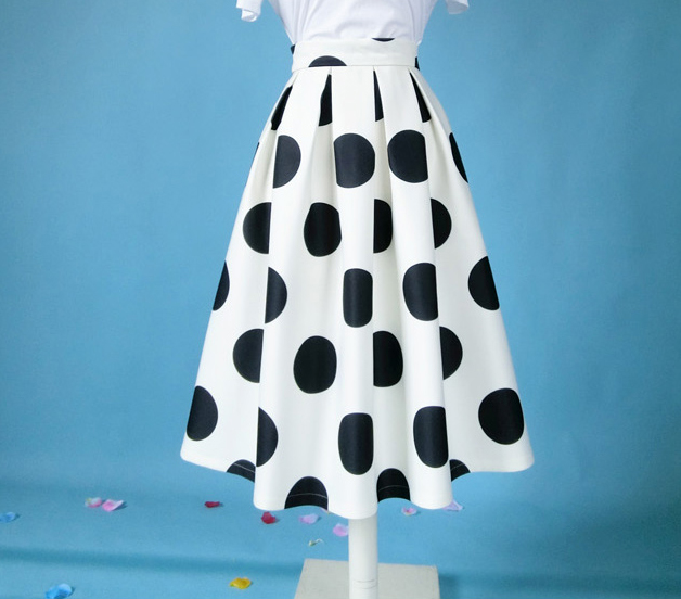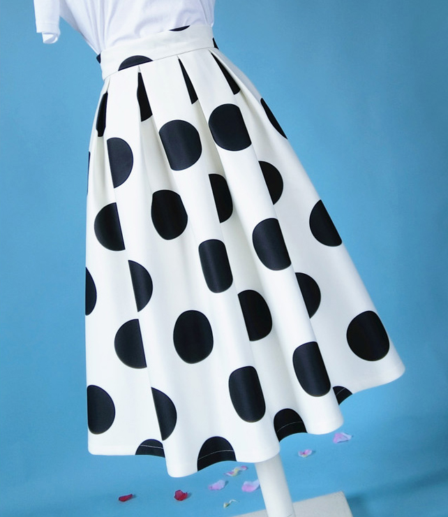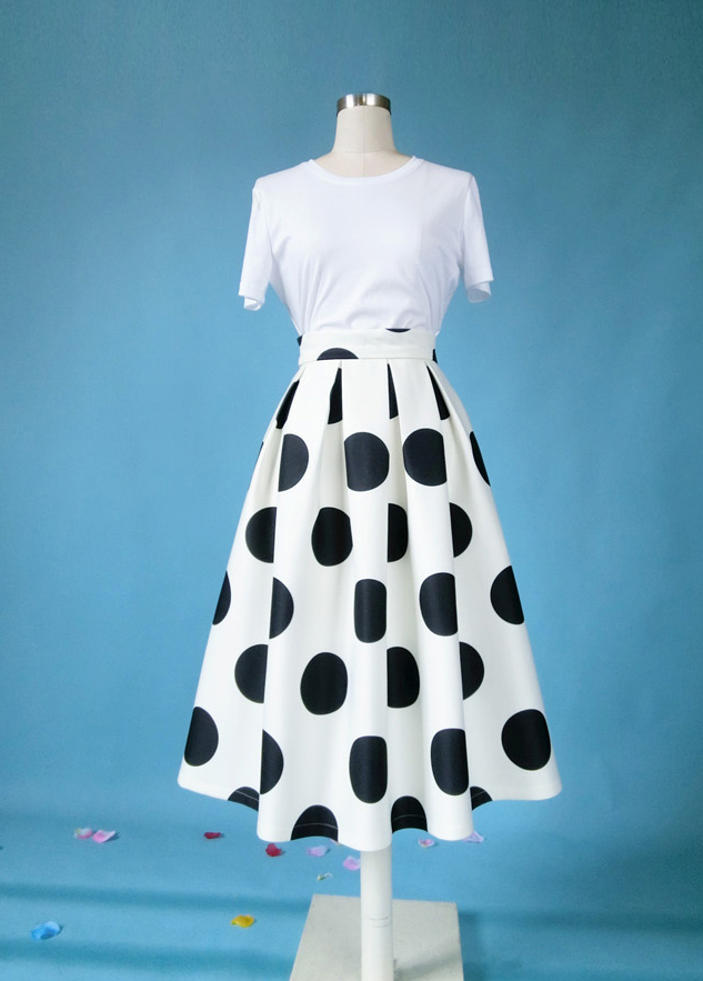 Women High Waisted White Black Polka Dot Skirt Outfit Spring Fall Plus Size Polka Dot Midi Skirt Holiday Midi Skirt