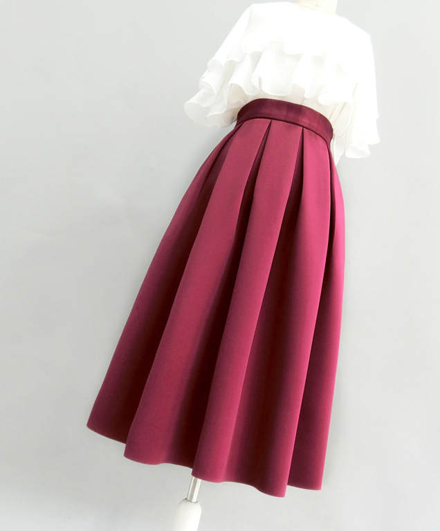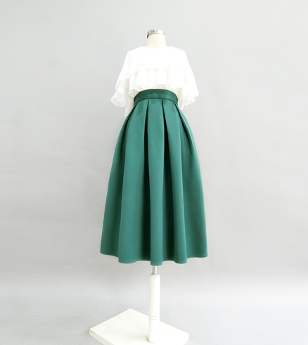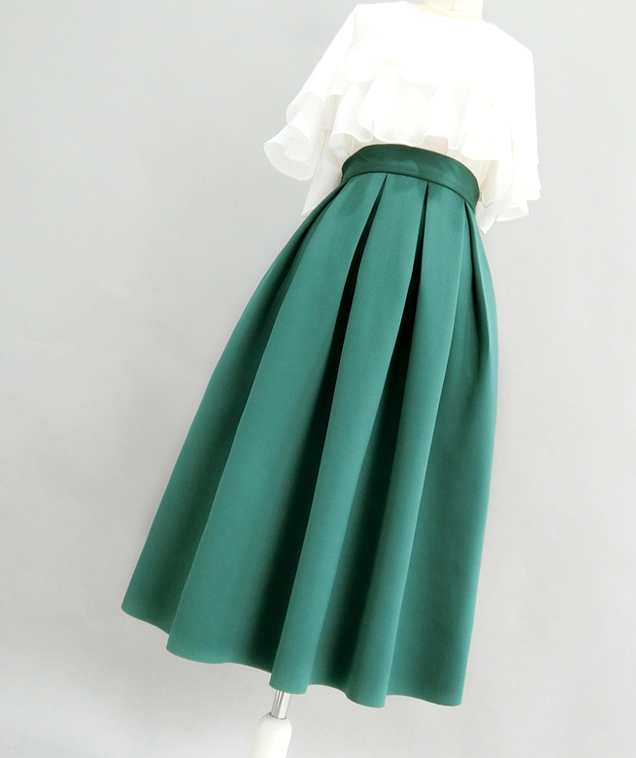 Emerald Green Pleated Midi Skirt High Waisted Winter Pleated Formal Skirt High Waisted A-line Pleated Skirt Outfit Plus Size - Black Red Emerald Green