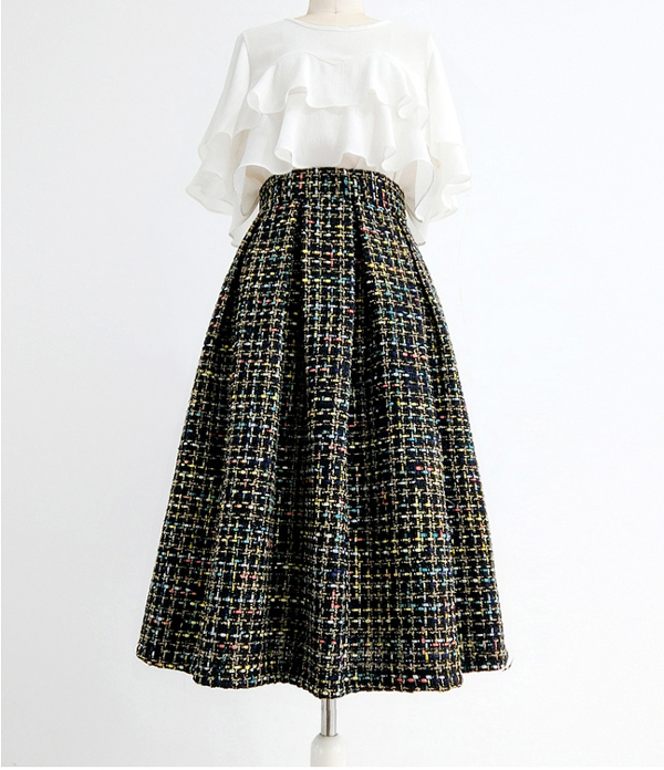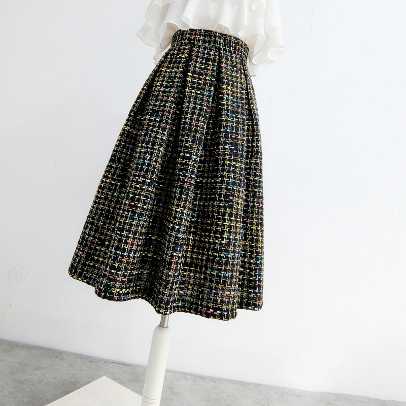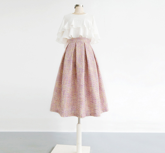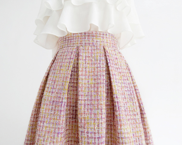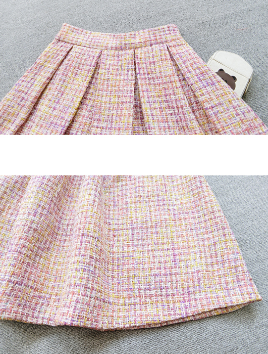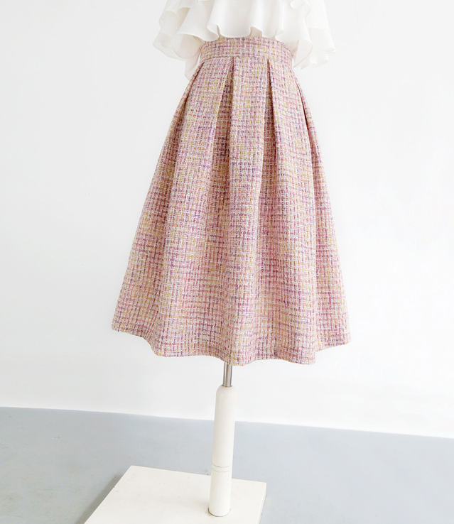 Winter Pleated Midi Skirt High Waisted Pink Houndstooth Midi Formal Skirt High Waisted A-line Plus Size Pleated Party Skirt Outfit