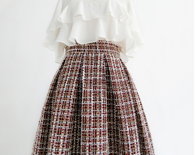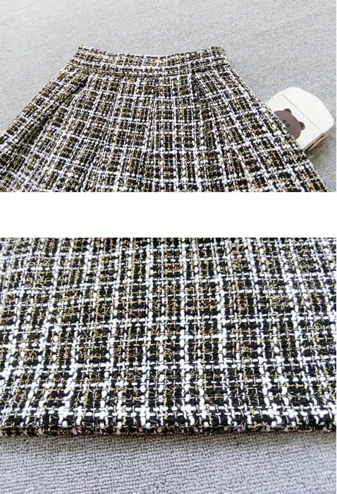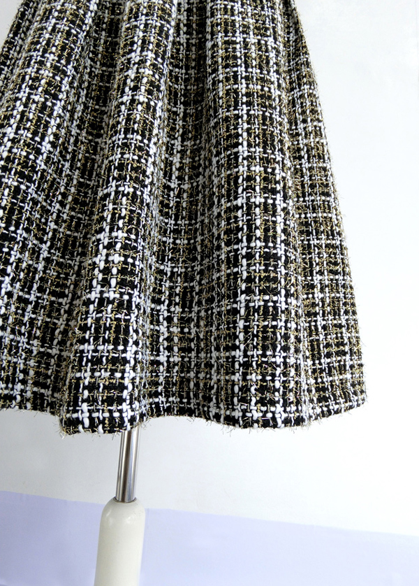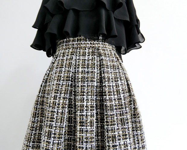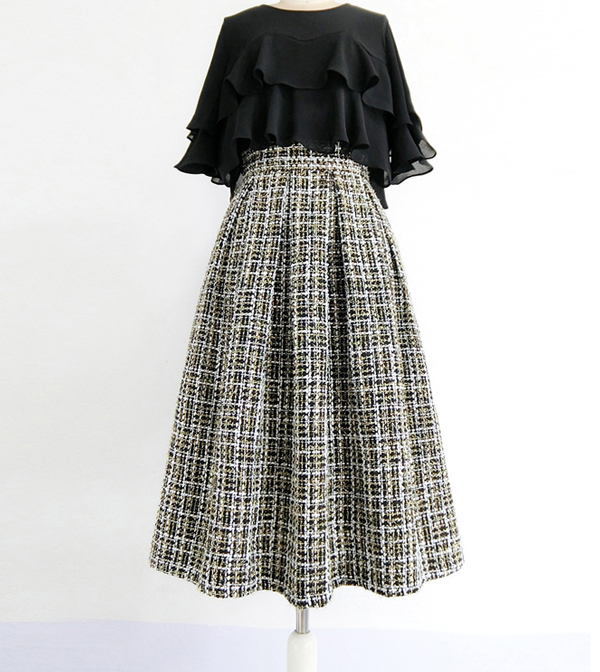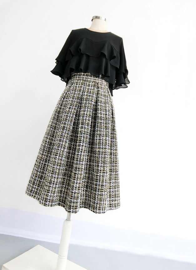 Black Tweed Midi Party Skirt Women A-line High Waist Pleated Tweed Party Skirt Outfit