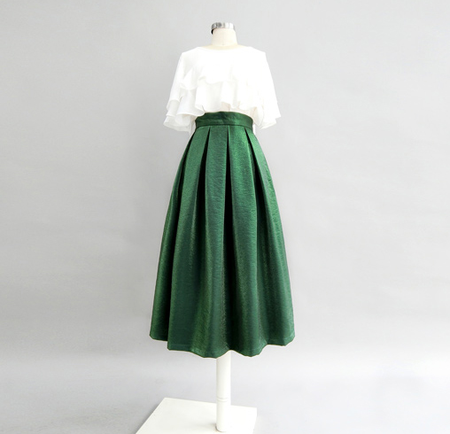 * High waist, full pleated. Actually this skirt is needed much more cloth than usual skirt.