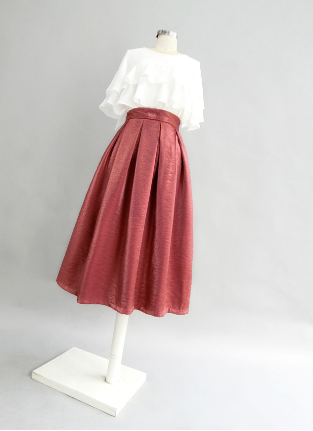 Women Burgundy Pleated Midi Skirt, High waisted Midi Party Skirt for women is our shop's new items. Elegant midi Skirt outfit Pleated Skirt with retro Style Skirts is easily match any tops. It can keep you warm very well and look still chic and elegant.
