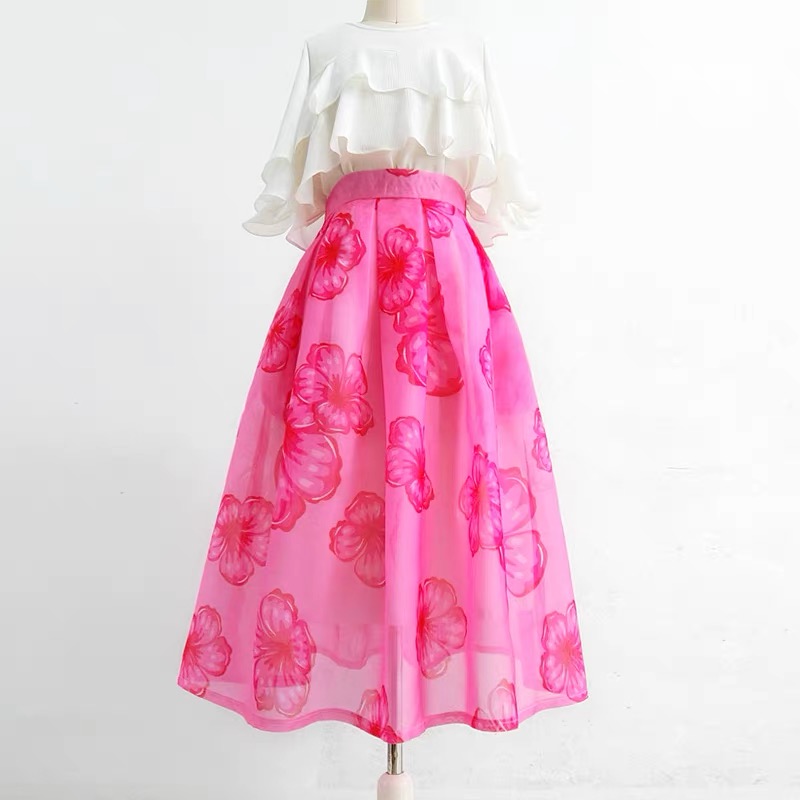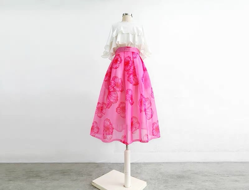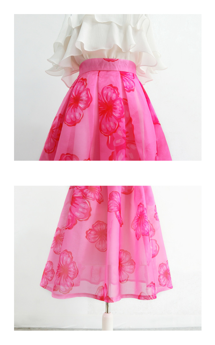 HOT PINK MIDI SKIRT LADY Romantic Midi SKIRT OUTFIT PLEATED PLUS SIZE PINK Flower PARTY SKIRT A-LINE PLEATED HOLIDAY SKIRT OUTFIT Custom Plus Size US0-US24