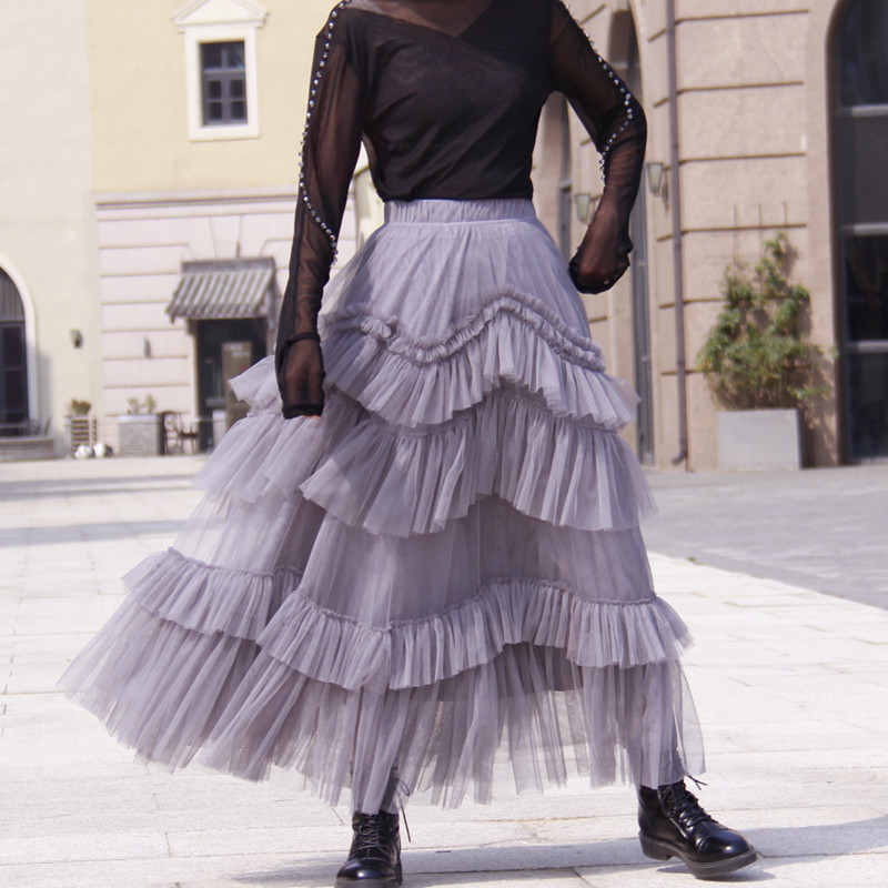 Women Gray Tiered Skirt Outfit Full Long Tiered Tulle Skirt Princess Outfit Custom Wedding Outfit